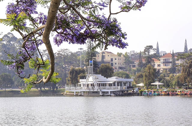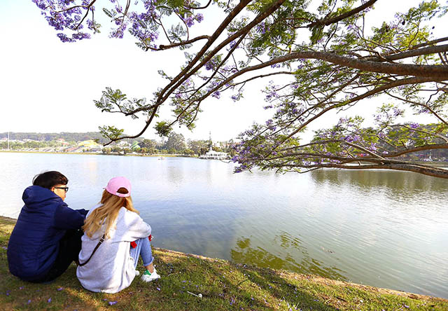 Từ sau Tết Nguyên đán đến tháng 4, Đà Lạt nhuốm màu phượng tím. Bên Hồ Xuân Hương thơ mộng, những nhành hoa tím đong đưa trong gió chiều.