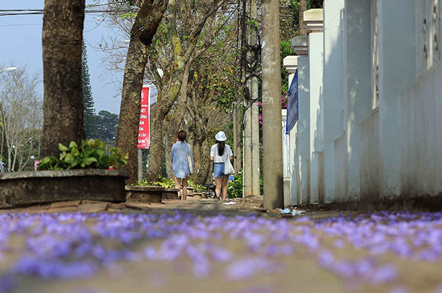 Đà Lạt, tháng 4 mênh mang nắng. Mùa này, phố phường xứ ngàn hoa khoác lên mình màu nhớ. Trên nhiều cung đường phố núi, những đóa phượng tím dịu dàng phô diễn vẻ đẹp đằm thắm, hoài niệm. Bất chợt, cơn gió nhẹ lay, những bông hoa tím rơi rơi như cơn mưa hoa, vấn vương bước chân lữ khách.
