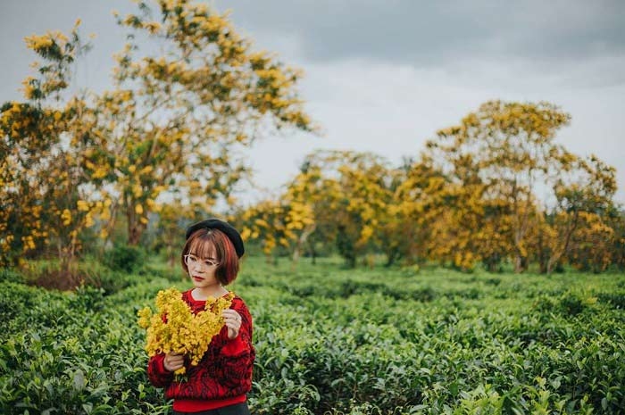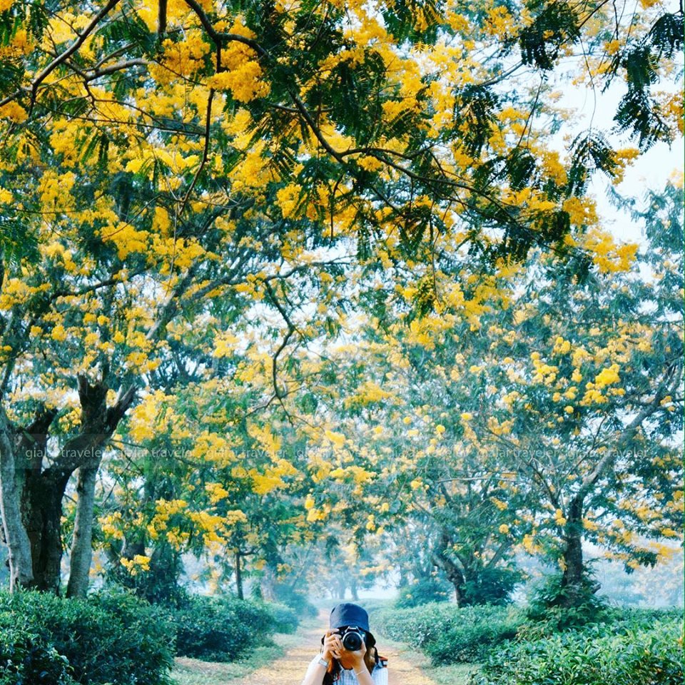 Tuy nhiên, không phải nơi nào cũng lý tưởng để ngắm muồng vàng đẹp, rực rỡ nhất cũng như lưu lại được những tấm hình lung linh nhất. Dân phượt thường rỉ tai nhau rằng, để chiêm ngưỡng trọn vẹn sắc muồng vàng ở Gia Lai, hãy tìm đến khu nương chè Đội 2 và Đội 3, thuộc nông trường chè Bầu Cạn, huyện Chư Prông.