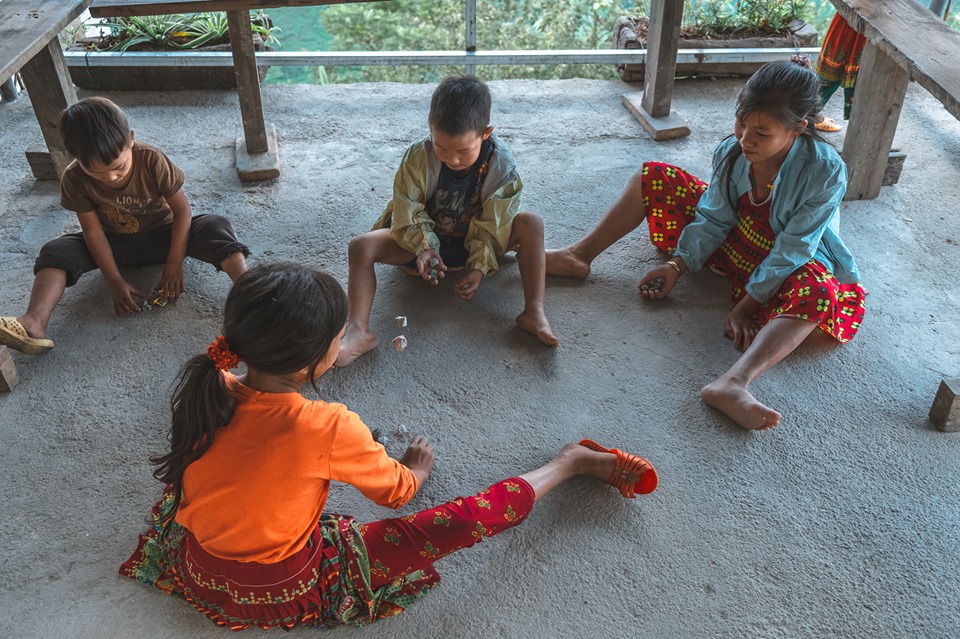 Dù thiếu thốn, nghèo khó, nhưng trẻ em vùng cao vẫn vô tư, bằng lòng, vui vẻ với những gì xung quanh chúng, đôi khi các em còn tự chế ra những món đồ chơi thô sơ để tìm niềm vui...