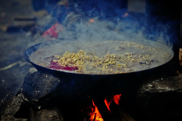 Giống như các tỉnh vùng cao như Điện Biên, Lai Châu, Cao Bằng thì xôi ngũ sắc cũng là món ăn quen thuộc của người dân Hà Giang. Xôi được nấu từ gạo nếp nương, thấm thứ màu sắc được tạo từ các loại cây, lá. Xôi khi chín có năm màu đẹp mắt, thơm bùi hương gạo nếp, ăn vào dẻo ngon.