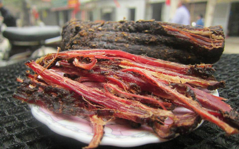 Đặc sản Hà Giang mang về làm quà số một phải kể đến món thịt gác bếp. Thịt trâu, thịt lợn nạc bản lớn được tẩm ướp gia vị sao cho vừa miệng rồi để lên gác bếp hun khói. Du khách thưởng thức thịt gác bếp vừa có thể tận hưởng được chút hương khói bếp đặc trưng, khi cho vào miệng lại vừa ngọt vừa đậm đà chấm cùng chẩm chéo là thành món nhậu hết nấc.