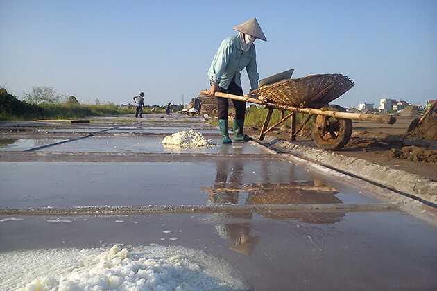 Cánh đồng muối Bạch Long - cánh đồng muối lớn nhất miền Bắc. Được ví như một con rồng Trắng uốn lượn, ngập tràn một màu trắng xóa trải dài theo bãi biển.