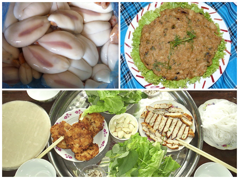 Ngư dân Cà Mau rất thích câu mực trứng, phần để tăng thu nhập, phần vì “khoái” ăn chả trứng mực. Món chả này được làm từ bọc trứng cùng 2 nan sữa của con mực. Trứng mực và nan sữa sau khi được lấy ra sẽ đem quết cùng gia vị, tiêu, bột ngọt, hành lá và nắn thành từng lát nhỏ hình tròn để chiên. Chả sau khi chiên chín có màu vàng rộm và mùi thơm đặc trưng, vô cùng hấp dẫn. Chả ăn cùng với bánh tránh, rau thơm, mới khiến món chả béo bùi không bị ngấy.