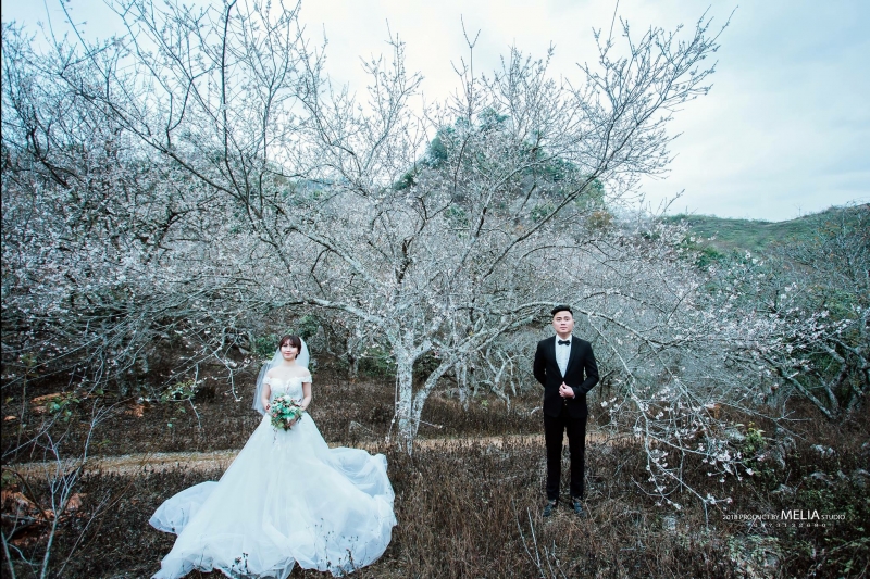 Mộc Châu, Sơn La vốn là địa điểm du lịch nổi tiếng đồng thời cũng là nơi chụp ảnh cưới đẹp quen thuộc của cộng đồng cưới miền Bắc. Với những đồi chè xanh ngút tầm mắt, những cánh đồng hoa cải trắng, hoa đào, hoa ban tuyệt đẹp, nơi đây được ví như thiên đường ảnh cưới của các cặp đôi.