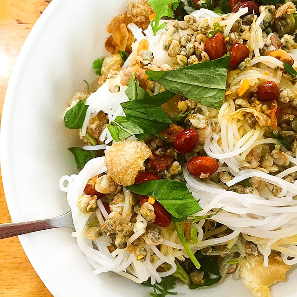 Nhắc đến những món ngon đặc sản Quảng Trị, không thể không nhắc đến bún hến Mai Xá. Tuy được gọi là bún hến, nhưng thực chất nguyên liệu chính của món bún này không phải là con hến, mà là từ con chắt chắt. Chắt chắt là một họ nhà hến, nhưng có phần nhỏ hơn và mang vị ngọt đặc biệt.