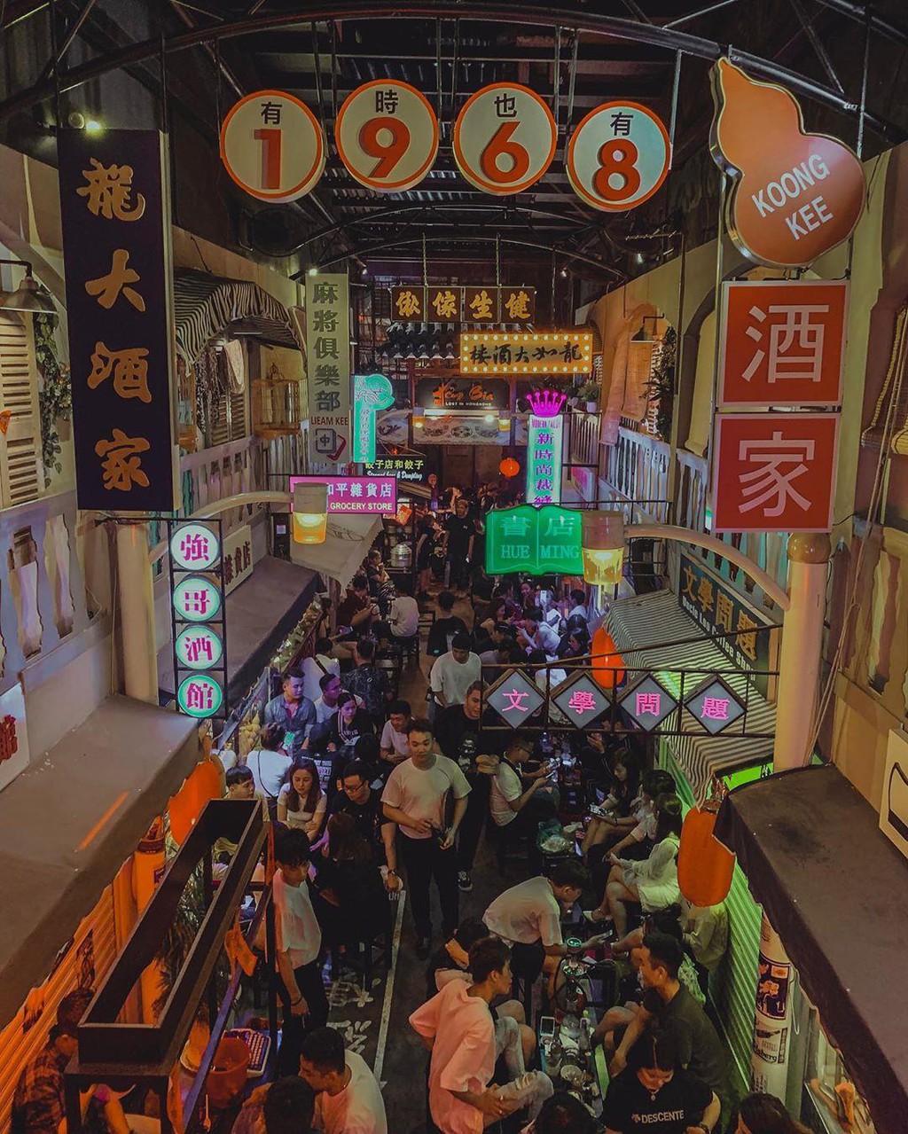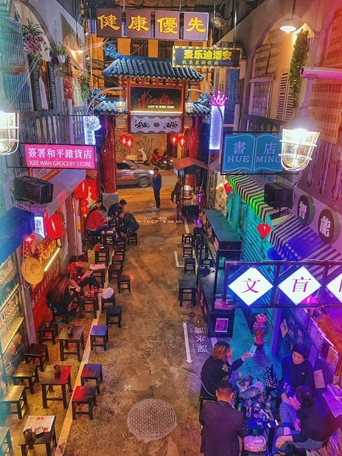 Con hẻm có 2 tầng được trang trí với những bảng hiệu neon, đèn lồng nhiều màu sắc. Những tiểu cảnh như quầy vịt, xe bán dimsum tựa như một Hong Kong thu nhỏ. Mỗi góc nhỏ đều trang trí sao cho giống một cửa hiệu ở Hong Kong để bạn có thể thỏa thích chụp ảnh. Quán mở cửa từ 15h chiều hôm trước đến 5h sáng hôm sau, là chốn ăn chơi dành cho hội cú đêm.