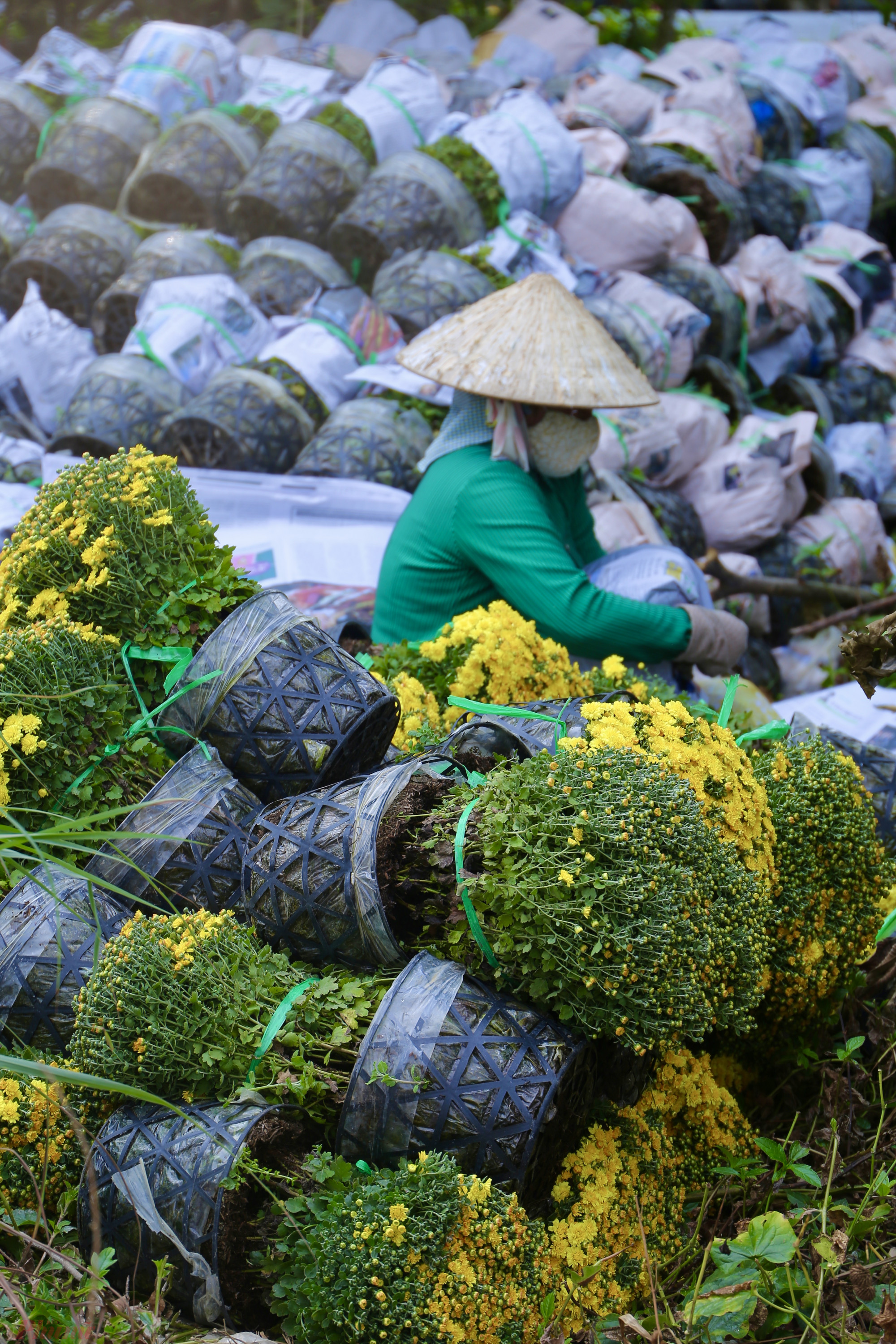 Về Sa Đéc trong những ngày cuối tháng Chạp, không khí rộn rã, nhộn nhịp len vào từng ngõ ngách. Đây cũng là thời điểm hoa tết tại làng hoa trăm tuổi này được xuất đi nhiều nơi. Trong đó, những cánh đồng cúc mâm xôi bát ngát luôn dễ dàng thu hút sự chú ý bởi sắc vàng rực rỡ đặc trưng cũng như kiểu dáng bo tròn độc đáo của loài hoa này.