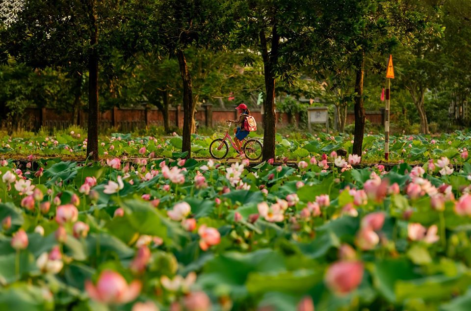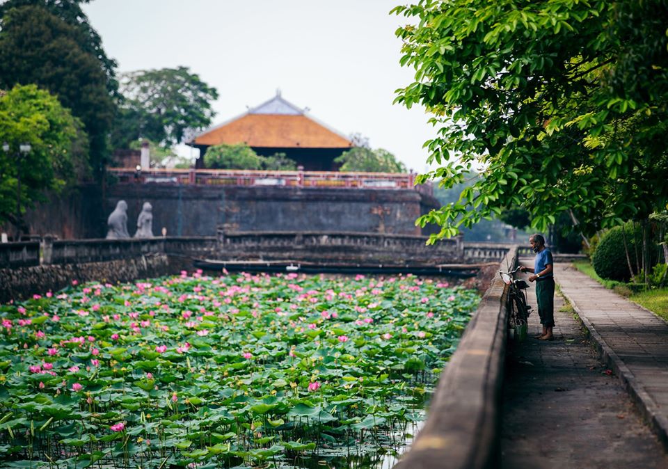 Đến Huế vào những ngày cuối tháng 4 cho tới tháng 6 là thời điểm tuyệt vời nhất cho du khách đươc đắm chìm trong bức tranh sắc màu của mùa sen nở rộ. Còn gì bằng khi dạo quanh một vòng thành phố, ghi lại những khoảnh khắc đẹp của đất trời Cố đô, để rồi cảm nhận hương hoa thơm thoảng nhẹ trong gió và sự tinh khôi bình dị của buổi nắng sớm.