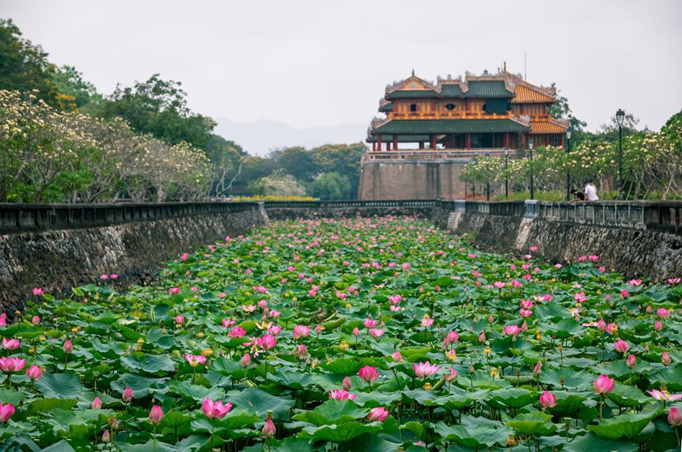 Hoa sen từ xưa đến nay gắn bó với con người xứ Huế, được khẳng định qua nét kiến trúc, ẩm thực và văn hóa nơi đây. Ở Huế, đi đâu cũng thấy hồ sen, ao sen, Hoàng cung Huế cũng không ngoại lệ. Tại đây du khách được tận hưởng hương thơm thanh nhẹ và thưởng lãm vẻ đẹp tinh khiết của hoa sen chốn cung đình.