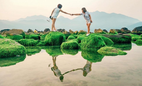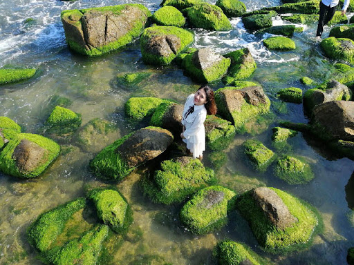 Những khối đá lớn nhỏ, phủ lớp rêu phong, khiến cho Rạn Nam Ô trở nên huyền ảo.