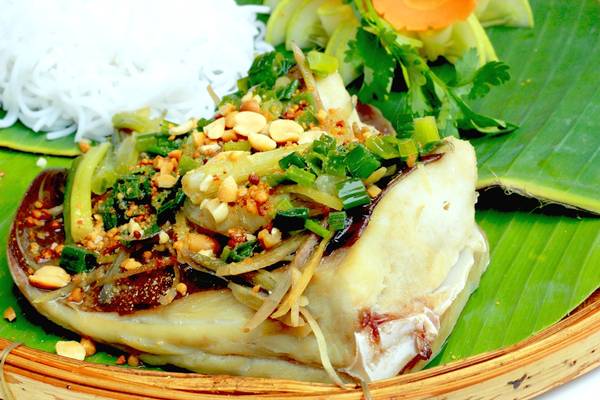 Lấy một miếng bánh tráng mỏng, cho các loại rau như xà lách, húng quế, tía tô, chuối chát, dưa leo… ít bún tươi, thịt cá, cuốn tròn lại và thưởng thức với nước chấm đậm đà hơi chua chua. Thịt cá béo ngọt hòa trong hương vị thanh mát của các loại rau rất ngon miệng và không gây cảm giác ngấy.
