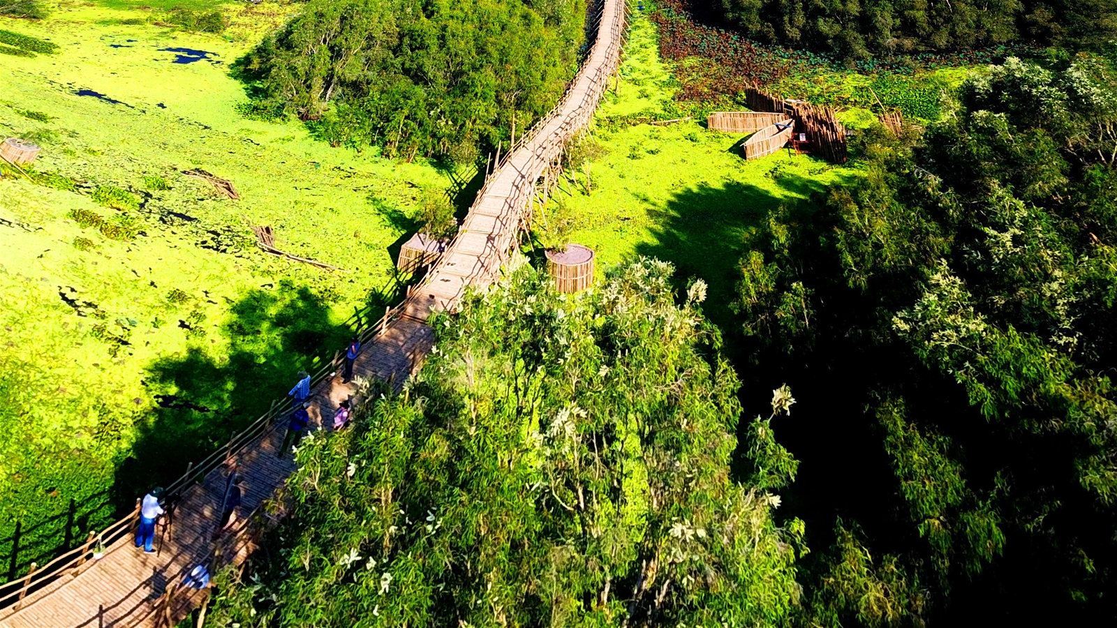 Là cây cầu được thiết kế cách điệu tựa theo dáng “rồng trúc bạch”, đến với rừng tràm Trà Sư, bạn không chỉ được cảm nhận không gian xanh mát trù phú mà còn được khám phá trọn vẹn thiên nhiên nguyên sinh hoang sơ. Nếu du lịch vùng bảy núi – An Giang, bạn nhớ ghé thăm rừng tràm Trà Sư để thả bước trên cây cầu tre đơn sơ và ngắm cảnh non sông nước Việt xinh đẹp.