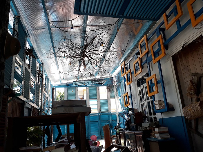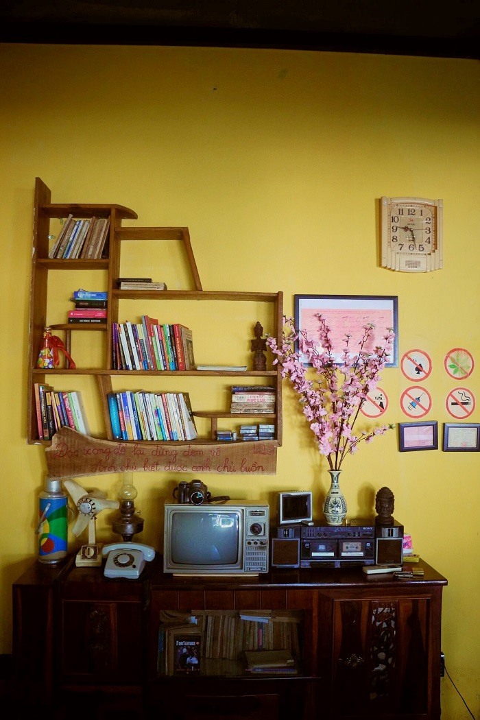 Để tăng thêm sự cũ kỹ cho quán, chủ quán còn bày trí những chiếc ti vi, radio, đèn dầu, bình thủy nước của thế kỷ trước. Tất cả được sắp xếp hài hòa trên một chiếc tủ gỗ dài màu nâu. Không gian quán cà phê đẹp ở Côn Đảo này vốn được tận dụng từ một ngôi nhà nên không quá rộng, những chiếc bàn ghế được sắp xếp khéo léo để tạo nên sự thoải mái cho từng nhóm du khách.