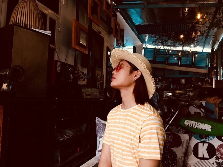 Cà phê Phiên Khúc gây ấn tượng mạnh với những gam màu lạnh và trung tính. Trước hiên quán là những khung cửa lá sách màu nâu, màu xanh dương được chắp vá lại với nhau. Thoạt nhìn trông có vẻ xuề xòa nhưng quan sát kỹ bạn mới thấy, tất cả đều là sự sắp đặt tinh tế để tạo nên nét mộc mạc cho quán.