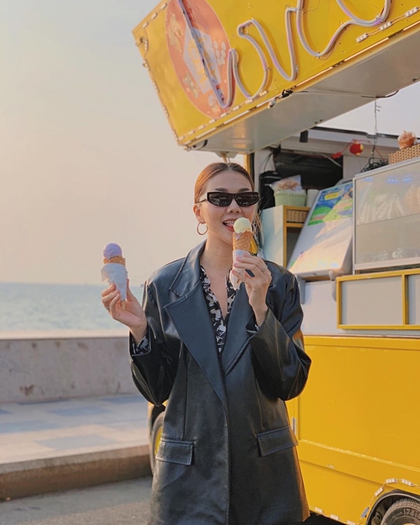 Một điều thú vị là siêu mẫu - diễn viên Thanh Hằng cũng đã có những bức ảnh check-in hết sức ấn tượng bên cạnh chiếc xe bán kem này.