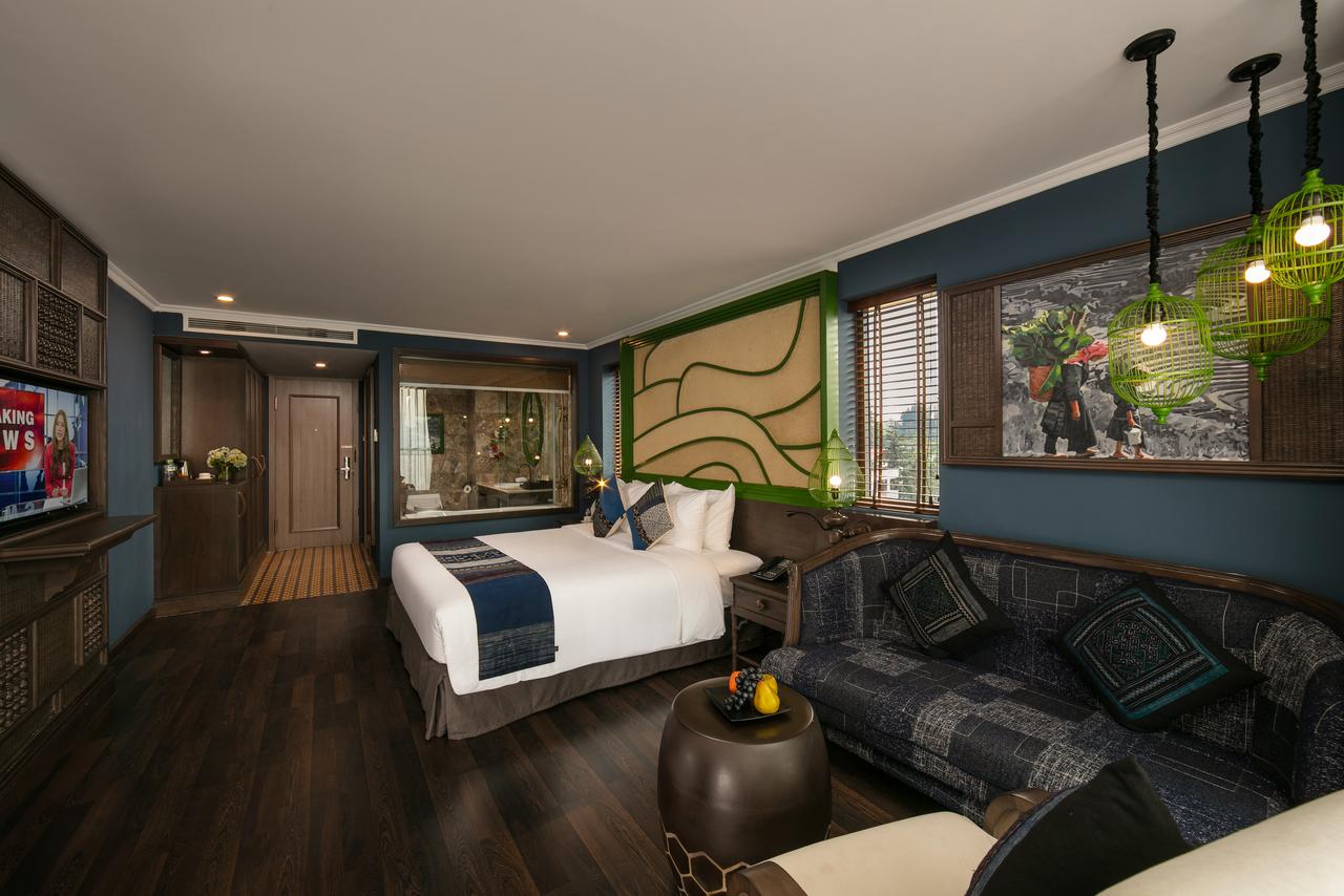 Nếu là người yêu Sapa da diết, mến sao cái không khí mát mẻ thoáng đãng cùng vẻ đẹp hồn hậu pha chút màu ma mị thì khách sạn Pistachio Sapa là nơi dành riêng cho bạn. Ngay từ khi bước vào phòng, bạn sẽ bị chinh phục ngay trong từng món đồ nội thất, chi tiết trang trí được bố trí trong phòng. Vẫn là phong cách châu Âu hiện đại sang trọng, nhưng qua bàn tay sắp đặt cùng nghệ thuật bày biện khéo léo, khách sạn Pistachio Sapa được thêu dệt chẳng khác nào bức tranh phảng phất toàn bộ vẻ đẹp của miền đất Sapa, đâu đó treo bức tranh hai mẹ con gùi hàng lên nương rẫy, hay họa tiết thổ cẩm của dân tộc nhấn nhá trên chiếc ghế gỗ tiếp khách hay gọi mời du khách phương xa trên chiếc giường êm ái. Còn chưa nhắc đến, chỉ cần mở cửa ban công, bạn đã có thể đón mây gọi gió ùa ngay vào căn phòng nghỉ, một khoảnh khắc chạm đến cõi tiên cứ ngỡ chỉ có trên phim ảnh.