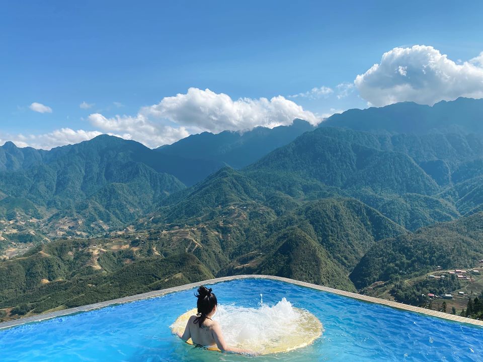 Đặc biệt, hệ thống bồ bơi vô cực cao nhất Đông Dương lần đầu tiên có mặt tại Sapa đã trở thành nét chấm phá vào bức tranh non nước hữu tình Sapa tuyệt đẹp, giúp ai đó ngắm nghía vẻ đẹp bốn mùa khoe sắc và thỏa sức thư giãn trong làn nước mát lành êm dịu dưới biển mây trắng muốt đang lững lờ trôi. Và tuyệt hơn nữa, đây cũng là bể bơi dát vàng 9999 duy nhất hiện nay tại Việt Nam và là tọa độ du lịch đang cực kỳ hot trong lòng tín đồ mê xê dịch.