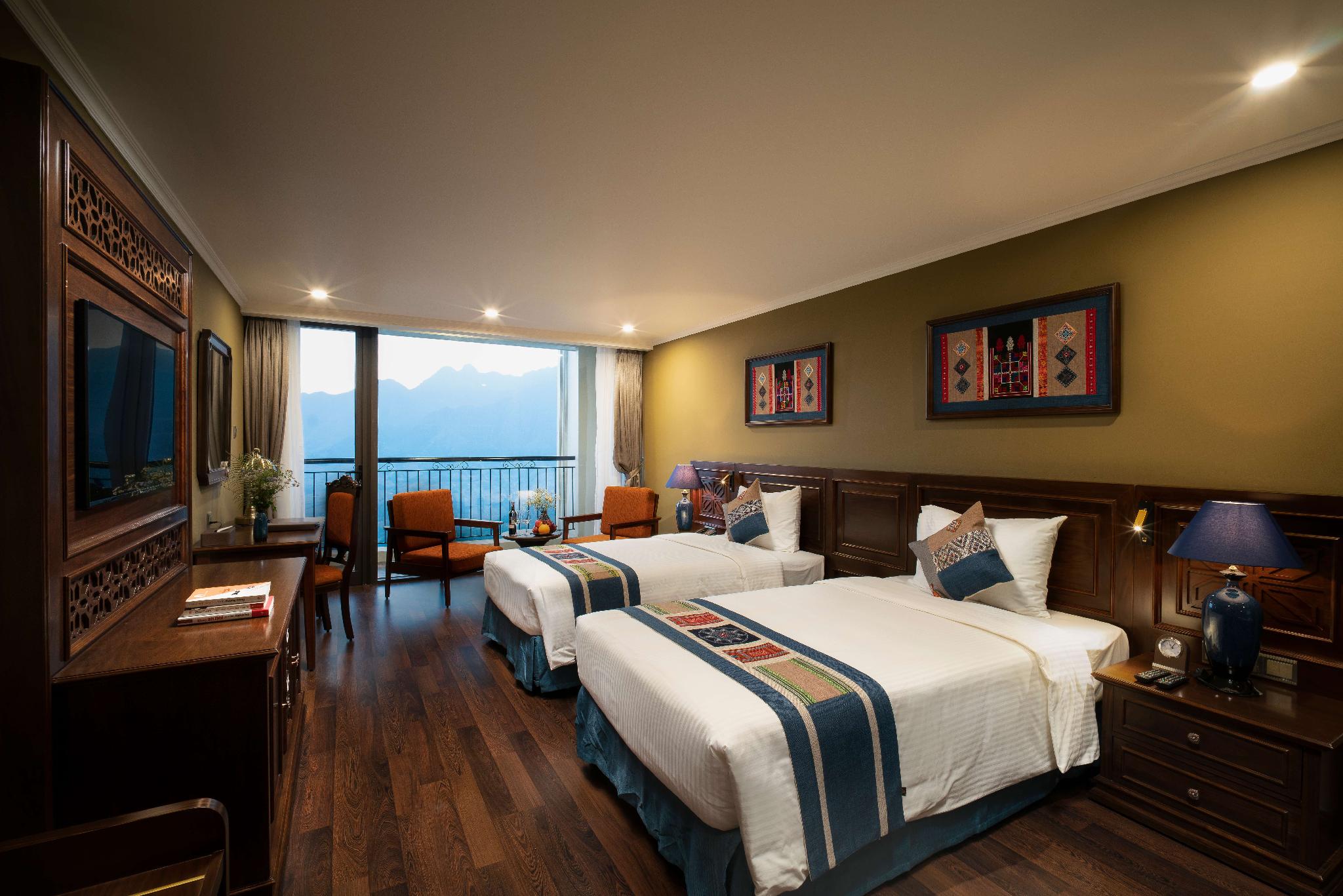 Còn gì tuyệt vời hơn khi buổi sáng tinh mơ hôm đó thức dậy giữa lòng thị trấn Sapa thấm đẫm sương mờ, vội mở cánh cửa sổ để hít hà căng lồng ngực thứ không khí tươi mới vùng cao và phóng tầm mắt ngắm trọn thung lũng Mường Hoa xa xăm mùa nước đổ. Để rồi sau bữa sáng ngon miệng, bạn tiếp tục được ngụp lặn trong làn nước mát lạnh sảng khoái trong bể bơi được bao quanh là những dãy núi nhấp nhô trùng điệp phảng phất chút nắng nhẹ tại bể bơi vô cực dát vàng cao nhất Đông Dương.