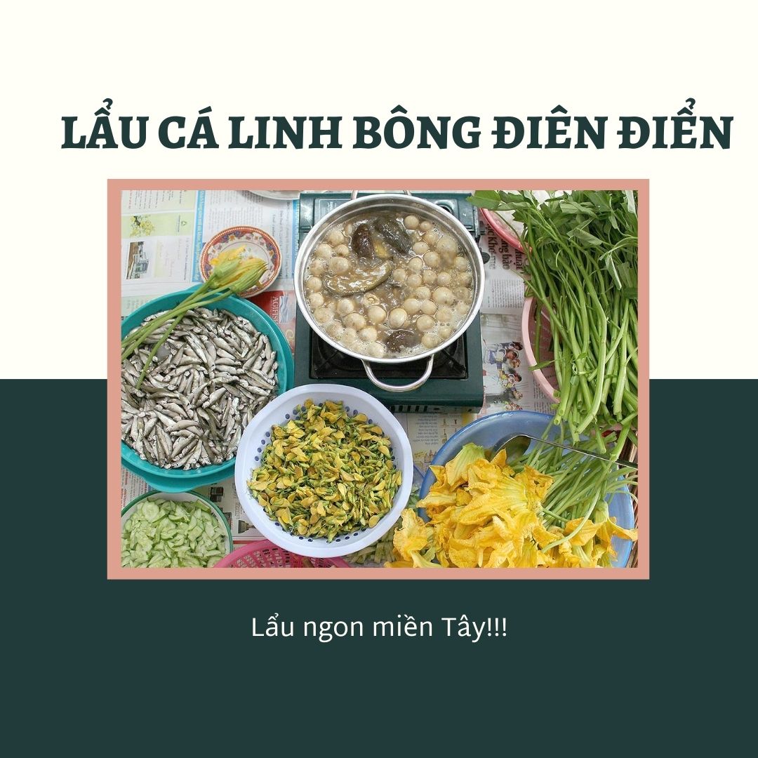 Ăn lẩu cá linh bông điên điển ngon nhất là vào đầu mùa khi cá linh non, ngon và tươi, bông điên điển giòn vàng