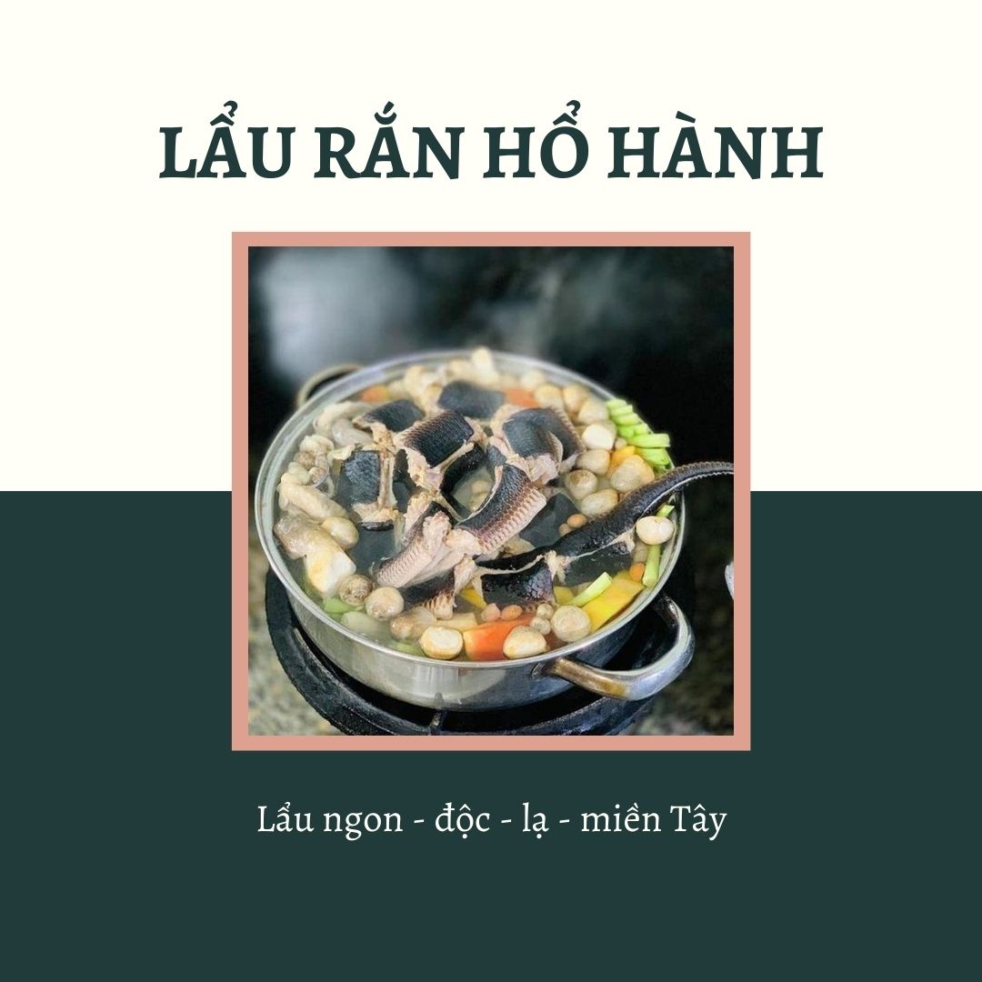 Lẩu rắn hổ hành là món ăn khiến nhiều người khi nghe tên gọi đã cảm thấy ái ngại. Rắn hổ hành nhiều nhất là vào mùa nước nổi khi nước dâng cao ngập tổ khiến rắn hổ hành phải tìm kiếm nơi cao hơn để kiếm ăn. Thịt rắn hổ hành thơm và chắc có độ ngọt đặc biệt. Lẩu rắn hổ hành có nước dùng trong, vị ngọt đậm đà và mùi thơm rất hấp dẫn. Người miền Tây thường ăn món lẩu này cùng mồng tơi, rau đắng, bông điên điển, mướp thái vát, lá lốt và bún tươi…