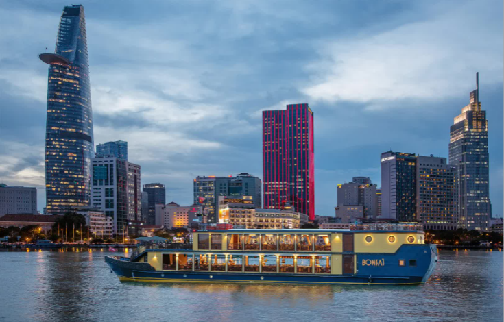 Du thuyền nhà hàng Bonsai Cruise lung linh trên sông Sài Gòn. Ảnh: Internet.