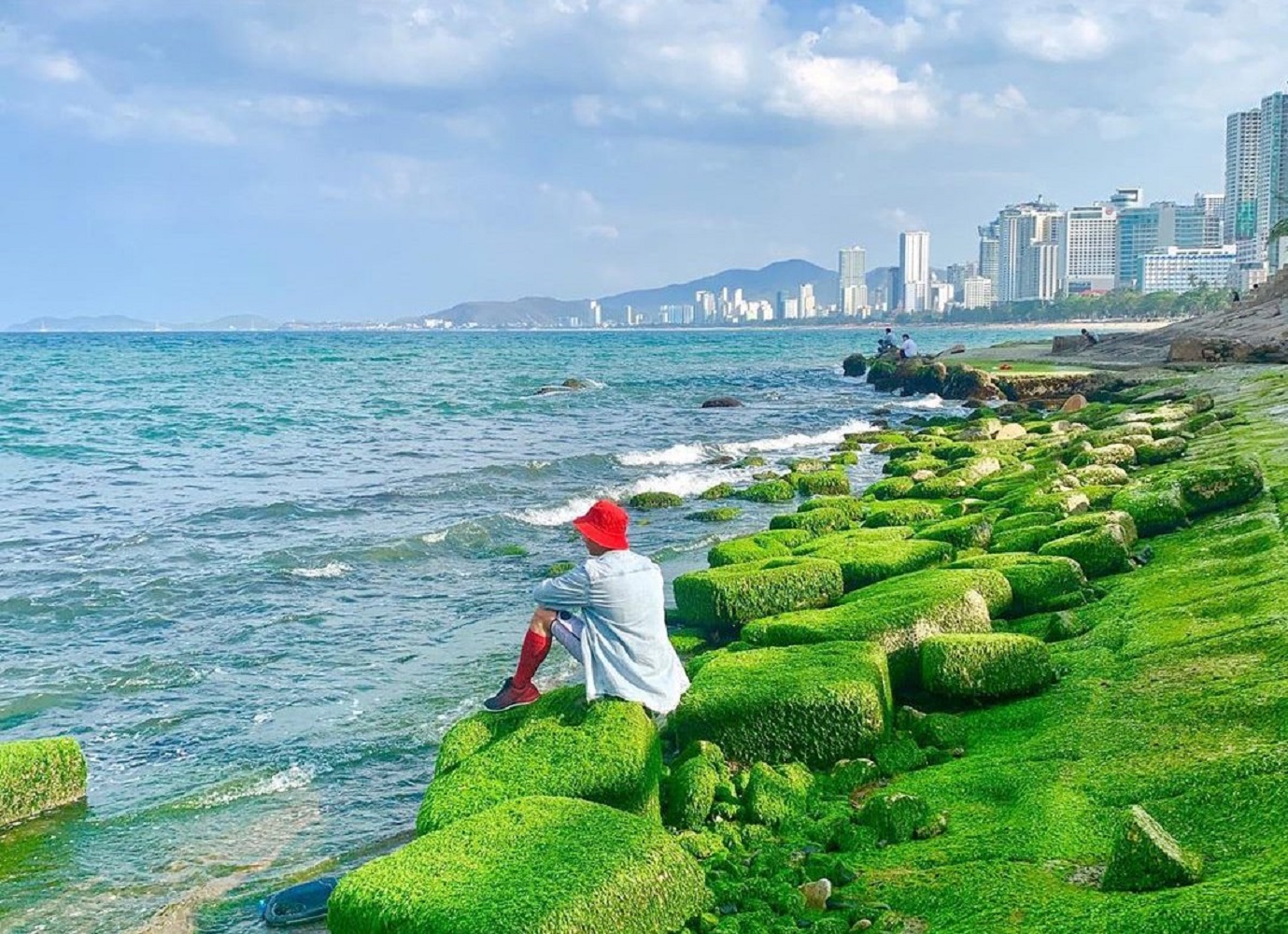 Dải rêu xanh phủ lên những khối bê tông vuông và những tảng đá đủ kích cỡ, nổi lênh đênh trên dòng nước, khi thủy triều rút du khách sẽ thấy màu xanh non của rêu hiện lên. Để ngắm trọn vẻ đẹp của Xóm Rớ bạn nên đến vào khoảng thời gian từ 5 - 6 giờ sáng… thời điểm bình minh vừa ló rạng. Lúc này ánh nắng vừa đủ chứ không quá gắt, nóng phù hợp để bạn lưu giữ những khoảnh khắc đẹp.