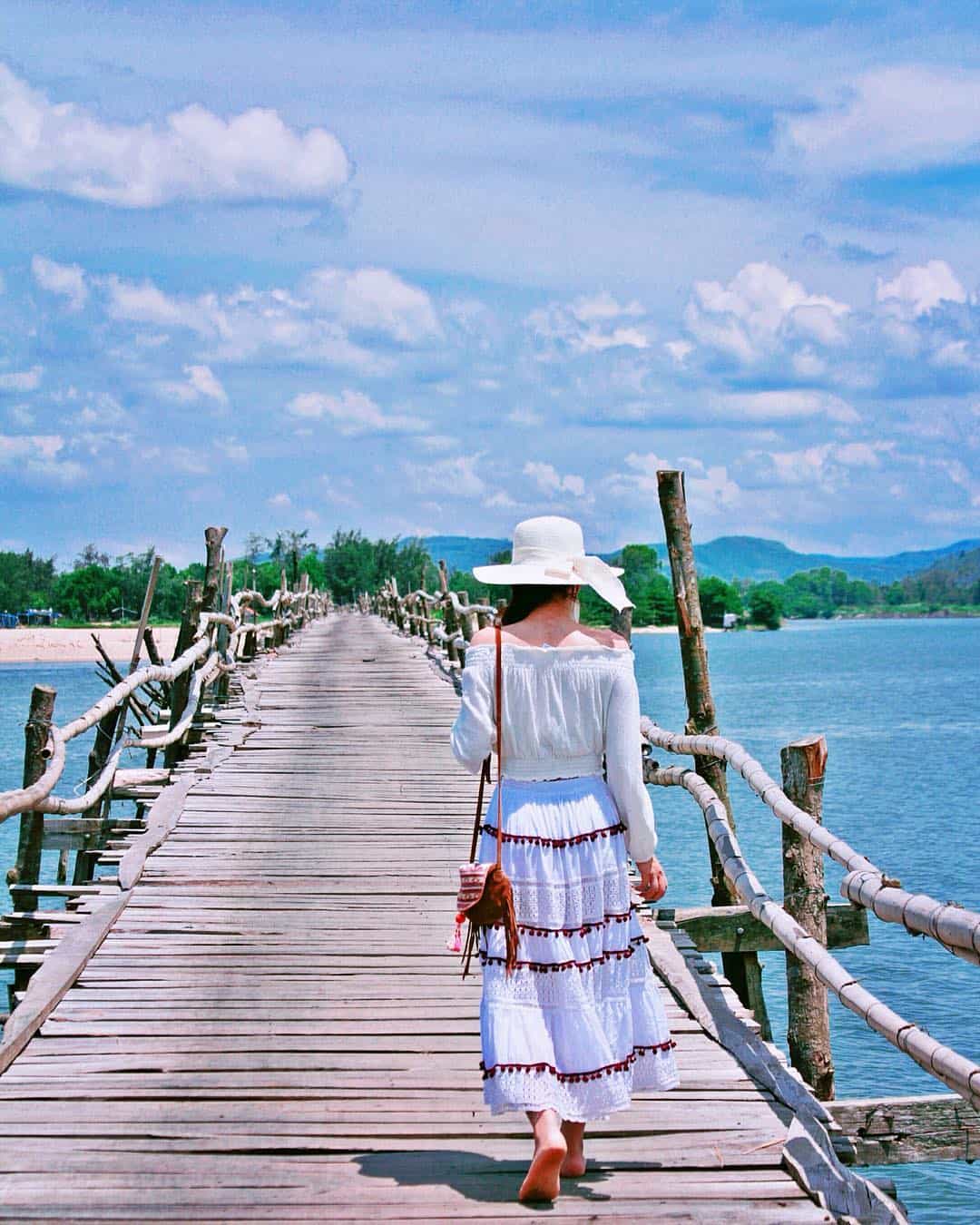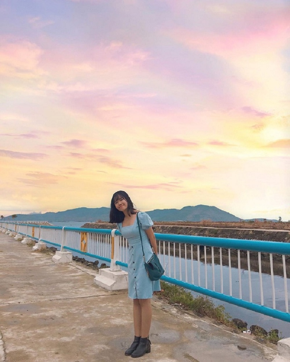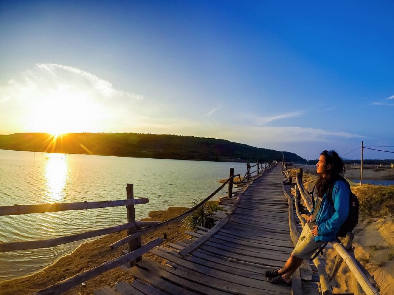 Được biết chiếc cầu này dài khoảng 400m, được làm từ gỗ tre và sắt. Nếu nhìn sơ qua thì có vẻ mỏng manh nhưng bạn có thể yên tâm tới thăm quan, đi dạo và chụp ảnh làm kỷ niệm với chiếc cầu này. Trên là bầu trời rộng lớn, dưới là màu nước xanh mênh mông, cây cầu gỗ như vắt ngang, du khách có thể thả hồn mình, sống chậm lại để cảm nhận được sự ung dung, tự tại khi đến với Phú Yên.