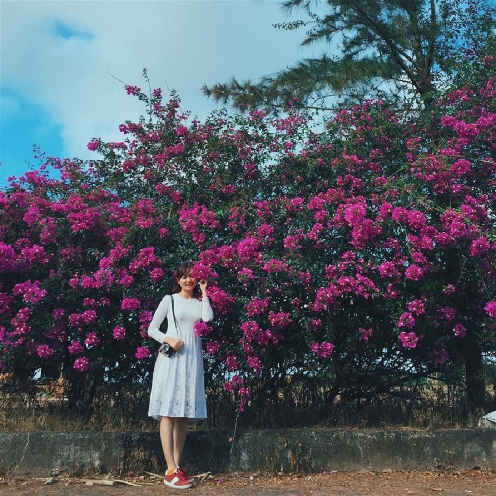 Trên đường đi tới đây, bạn sẽ thấy thiếu sót lắm nếu bỏ qua thung lũng trải dài một màu xanh ngắt, cung đường vắng xe, nhà thờ Bác Hồ. Bờ tường hoa giấy hồng tím cực kỳ nổi bật luôn được hội chị em yêu thích chọn làm background để chụp hình, cứ tấm nào lên sóng là tấm đó nhận được nhiều "like" cực kỳ.