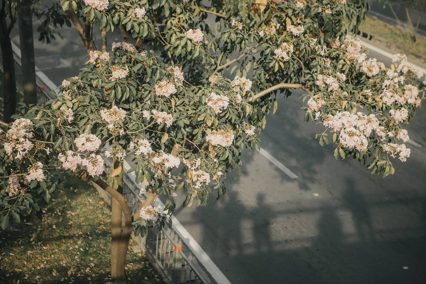 Màu hồng phớt của loại hoa được mệnh danh là "hoa anh đào" của Sài Gòn đang khoe sắc trên nhiều tuyến đường của thành phố, khiến ai đi qua cũng ngẩn ngơ đến lạ. Không chỉ giúp giảm bớt cái nắng gắt, những tán cây kèn hồng còn khiến Sài Gòn thêm phần thơ mộng. Nhìn thấy vẻ đẹp bồng bềnh của loài hoa này trên nền trời xanh, bạn sẽ cảm nhận được chúng mang đến một cảm giác tương tư, lưu luyến đến thẫn thờ.