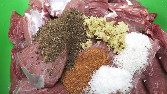 Các nguyên liệu cho món thịt trâu gác bếp. Ảnh: Traugacbep.com