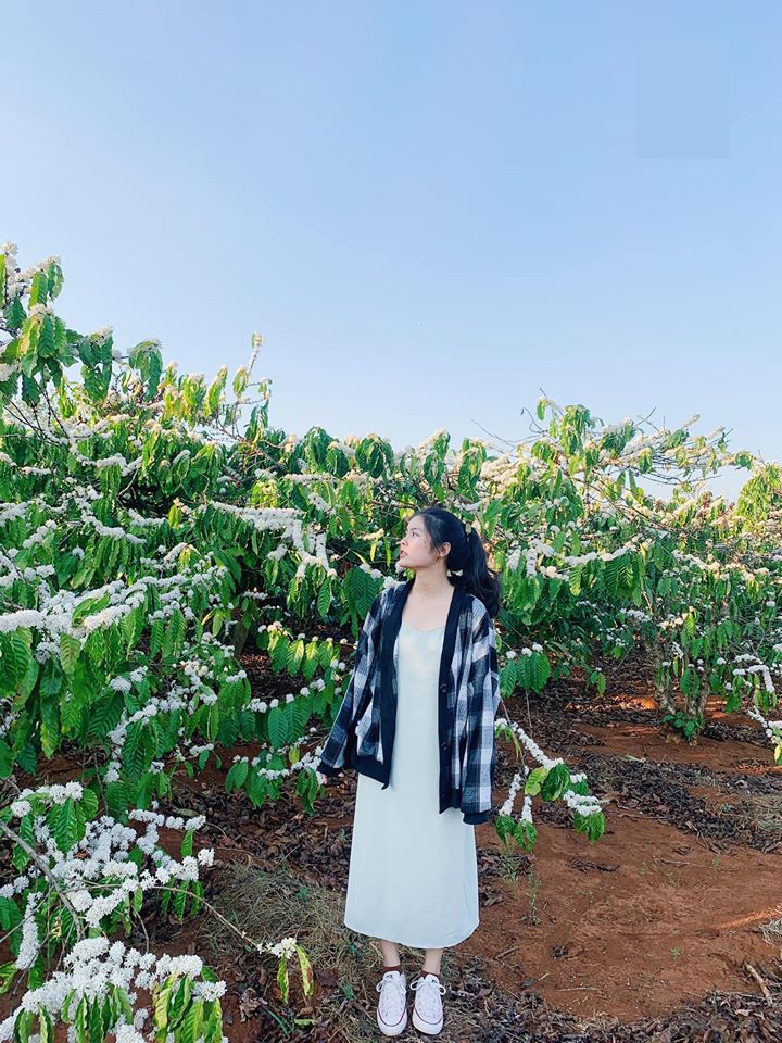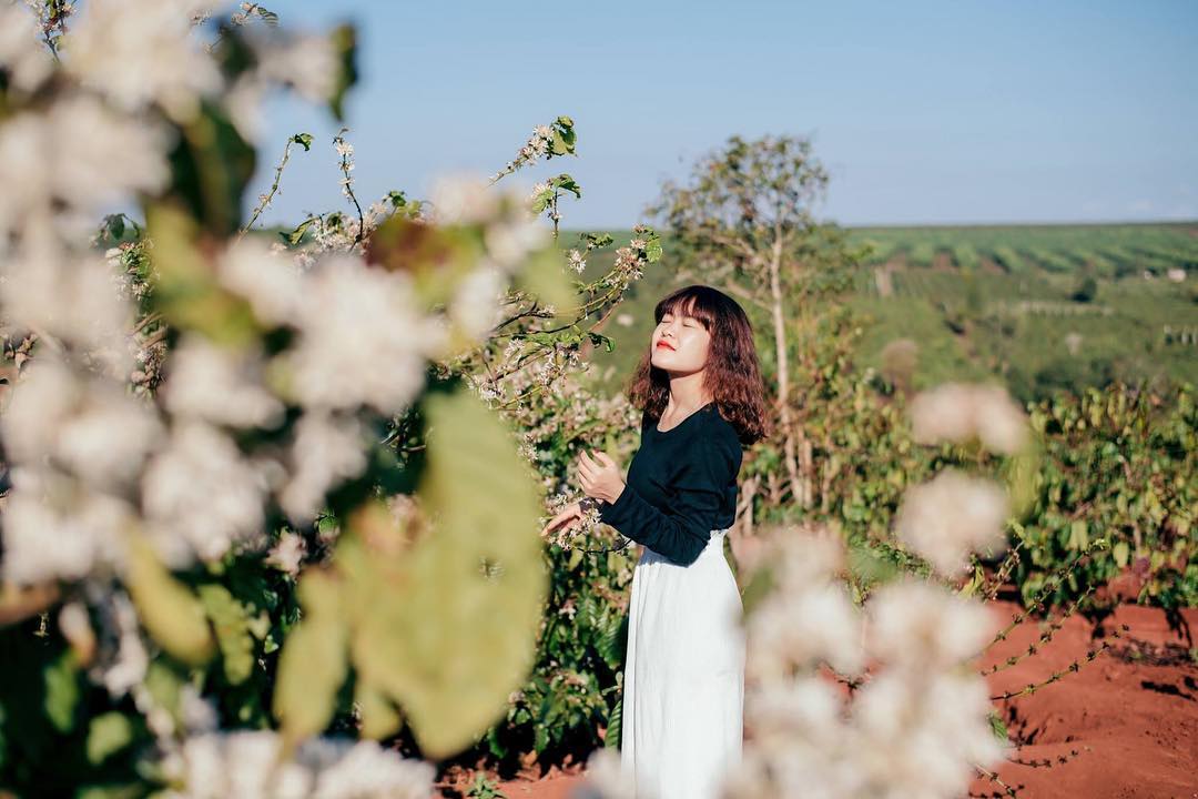 Bạn cũng có thể mặc trang phục truyền thống của người dân Tây Nguyên để chụp cùng hoa cà phê như thế này (Ảnh: 2sao).Bạn chỉ cần diện một bộ đồ thật đẹp, mọi thứ còn lại đã có loài hoa đặc biệt ấy lo (Ảnh: 2sao).Hóa nàng thơ với hoa cà phê nở trắng muốt (Ảnh: @suchin22).Không phải thời gian nào, loài hoa đặc biệt này cũng nở và khoe sắc đẹp nhất (Ảnh: @Thienphuong257).Hoa cà phê đẹp tựa như tranh vẽ (Ảnh:Tripi).