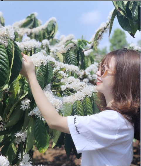 Hoa cà phê khi nở khiến người ta nhớ thương (Ảnh: VOVTV).Nụ cười của những nam thanh, nữ tú bên loài hoa đặc biệt (Ảnh: Cattour). Còn gì tuyệt vời hơn khi bạn được cùng người thân lưu lại những khoảnh khắc đẹp ở vùng đất Tây Nguyên (Ảnh: Vnexpress). Chụp ảnh bên hoa cà phê mà đẹp thế này thì ai mà chẳng thích (Ảnh: Vnexpress).