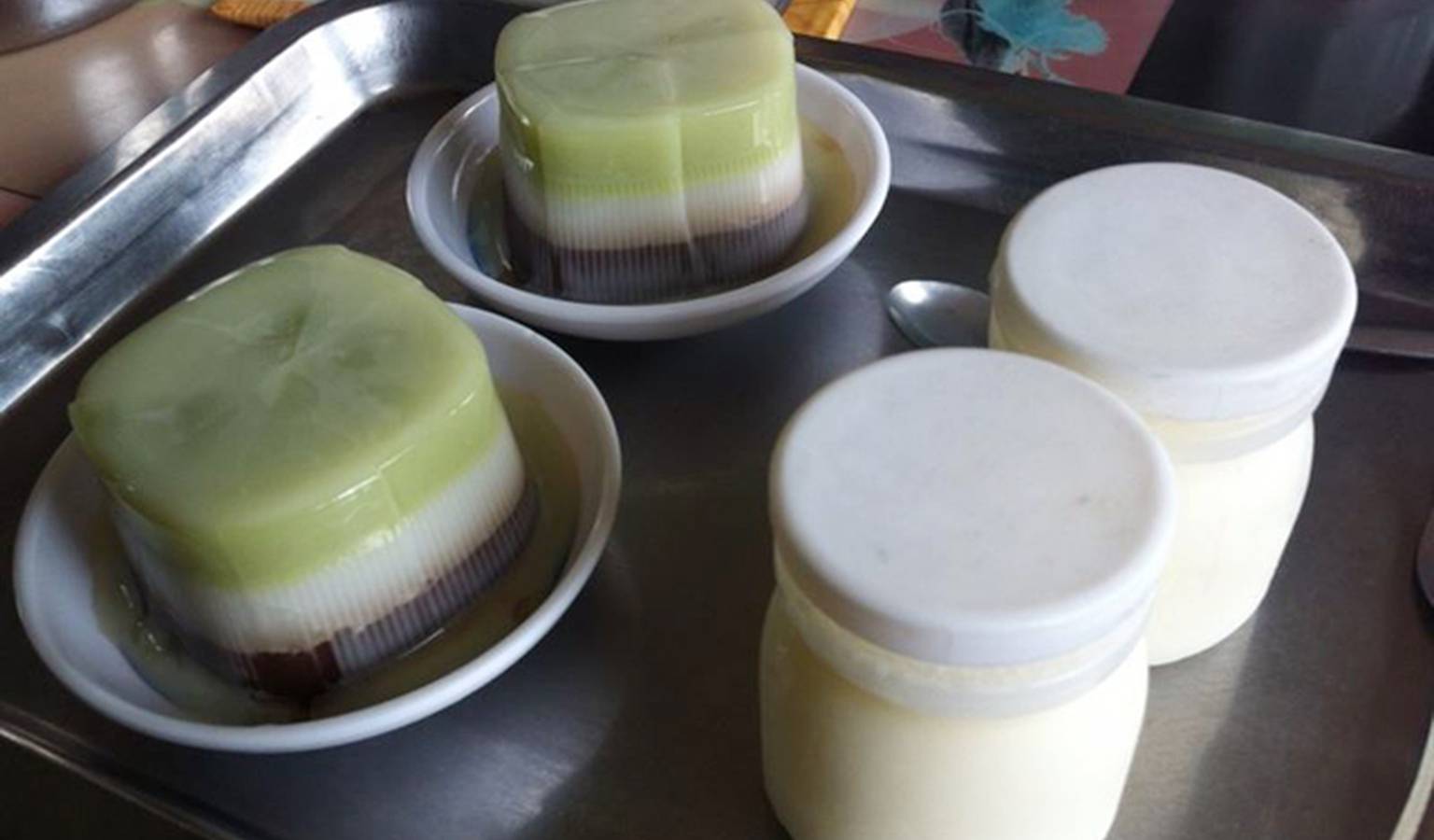 Thực đơn chỉ vỏn vẹn có vài món thạch ngọt dịu cùng ly sữa chua mềm ngậy, nhưng thử xúc một miếng bỏ vào miệng, bạn sẽ được cảm nhận hương vị ngọt mát tươi mới của mỗi loại. Đến đây, bạn không nên bỏ qua món thạch agar được yêu thích nhất tại đây. Ba lớp rau câu dẻo thanh kết hợp cùng sữa đặc béo ngậy, đảm bảo sẽ khiến bạn nhớ mãi trong chuyến đi Hải Phòng buổi chiều hôm ấy.