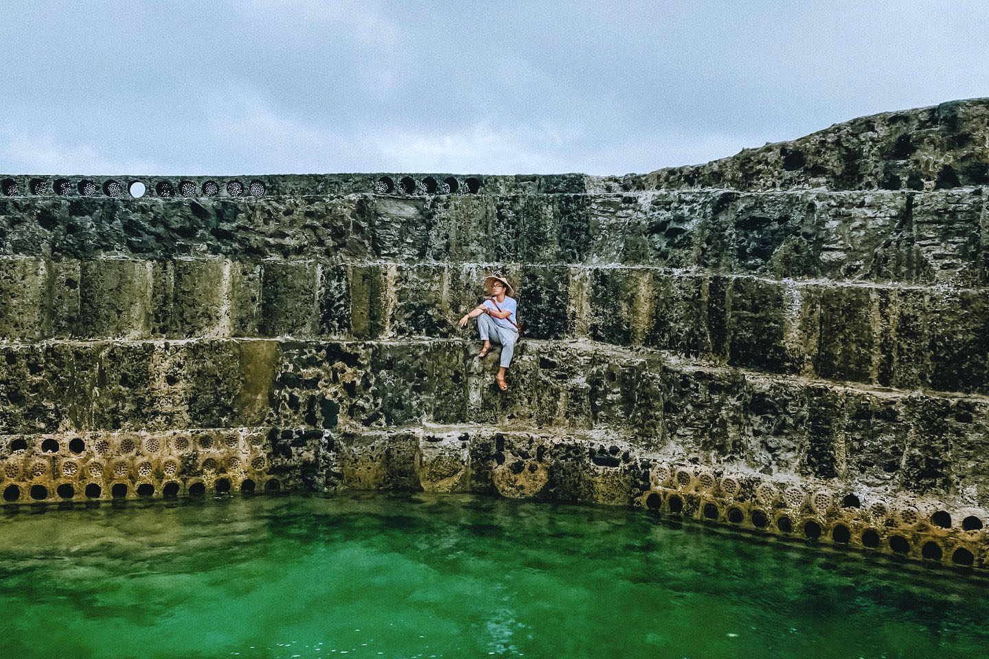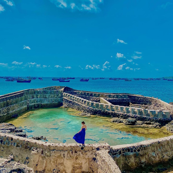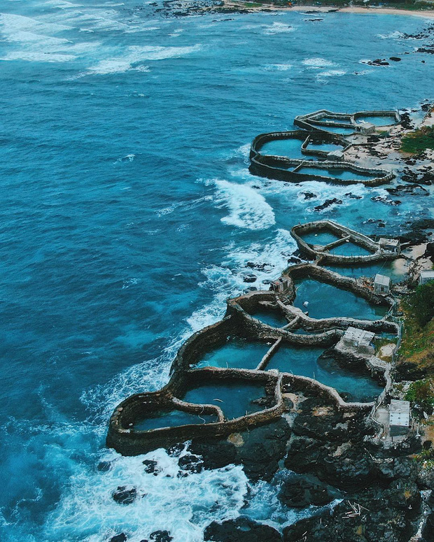 Nằm giữa làn nước biển xanh ngắt kết hợp với “hiệu ứng” sóng biển sủi bọt trắng xóa, từ mọi góc độ, bạn đều có thể phóng tầm mắt bắt những khung hình tuyệt vời đầy quyến rũ, có trời, có biển và có cả màu xám nâu cũ kỹ, bám rêu cổ kính của những bức tường chắn sóng. "Sống ảo" ở hồ cá làng Dương vào thời điểm bình minh hay hoàng hôn thì chắc chắn bạn sẽ có những bức ảnh đẹp nức lòng đấy!