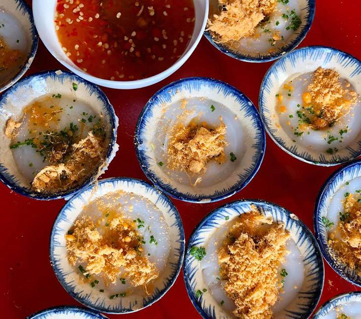 Vẫn là món ngon gần gũi với người dân miền Trung, bánh bèo là món ăn lót dạ tuyệt ngon cho bữa xế chiều rong chơi đói bụng ở “xứ Nẫu”. Mỗi phần bánh bèo là một chén bánh trắng muốt nhỏ xinh, rắc thêm chút màu đậu phộng giã nhuyễn, ruốc tôm đậm đà tươi ngọt và vài mẩu bánh mì chiên giòn tan. Cứ nghĩ mà xem, trên tay cầm đĩa bánh bèo còn đương nóng hổi, được chan thêm nước mắm ớt tỏi cay xè, rồi xúc thử một miếng, dường như cơn đói bụng buổi chiều đã bị đánh tan đi đâu mất.
