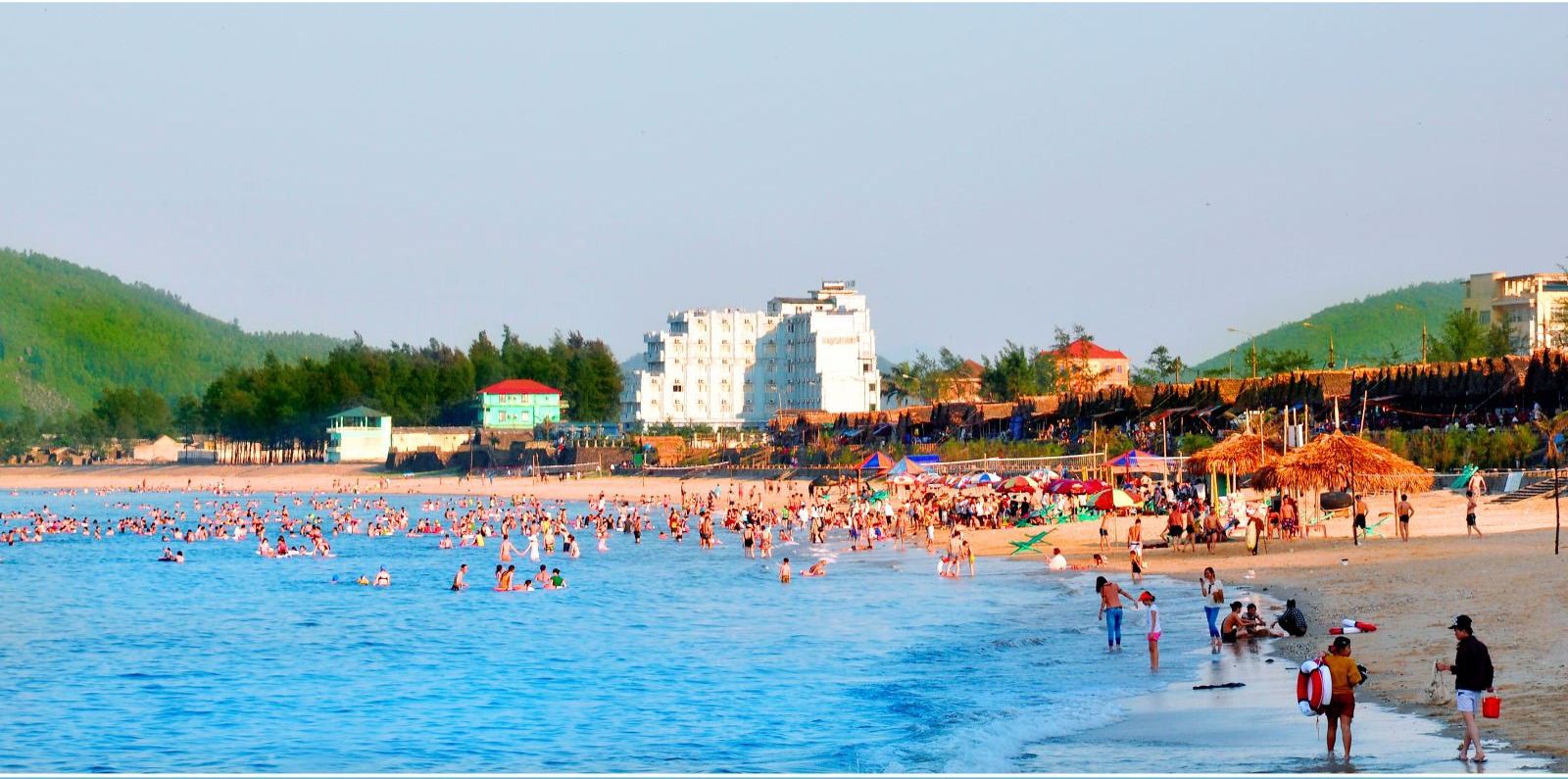 Bãi tắm Hoành Sơn hoang sơ và dân dã với những bãi đá nhấp nhô xen lẫn màu xanh của rêu, màu vàng trầm của vỏ ốc để lại sau mỗi đợt sóng vỗ, những dấu chân bò thủng thẳng dẫn nhau về. Bạn có thể di chuyển đến đây bằng ô tô hoặc tàu.