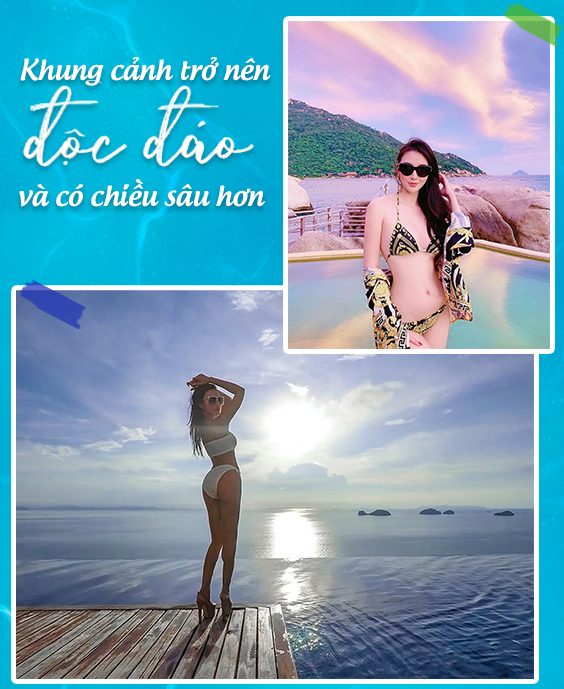 Thông thường thì “background” tại các bể bơi ở khu nghỉ dưỡng hay các khách sạn vốn dĩ đã rất xịn xò. Hãy tận dụng không gian tinh tế, sang chảnh với phong cách thiết kế đẹp mắt này để "check-in". Nếu bạn không phải là người biết cách pose dáng chuyên nghiệp như các Hot Instagram thì việc tìm kiếm những bối cảnh đẹp sẽ là “tuyệt chiêu” khiến bức hình của bạn trở nên lung linh.