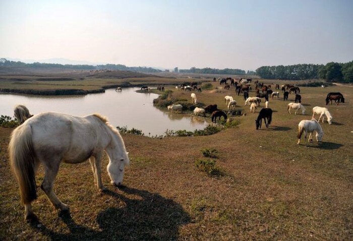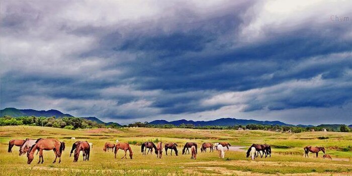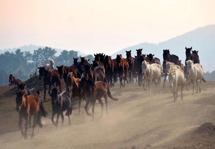 Nơi đây cũng được mệnh danh là “vương quốc ngựa”, vì thế mà bạn không thể bỏ qua trải nghiệm ngắm những đàn ngựa tung tăng gặm cỏ, thỏa sức chạy dọc thảo nguyên. Chẳng cần đến Mông Cổ, bạn vẫn có thể tận mắt chiêm ngưỡng sự dũng mãnh của “vó ngựa thảo nguyên". Khung cảnh những con ngựa nhởn nhơ xung quanh bãi đồi và hồ nước tạo thành một khung cảnh tuyệt đẹp.