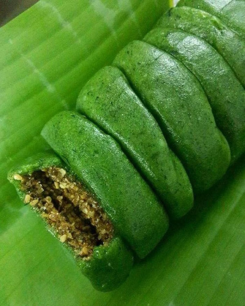 Món bánh ngải của người Tày có thơm ngon hay không phụ thuộc chủ yếu vào phần nhân. Đối với bánh có nhân đỗ xanh sẽ được trộn đều cùng đường phèn, đỗ đã đồ chín và thêm một chút dừa nạo sợi. Còn với nhân lạc sẽ giã nhỏ và nấu với đường phên vàng ươm, thêm vừng để tăng hương vị đậm đà.