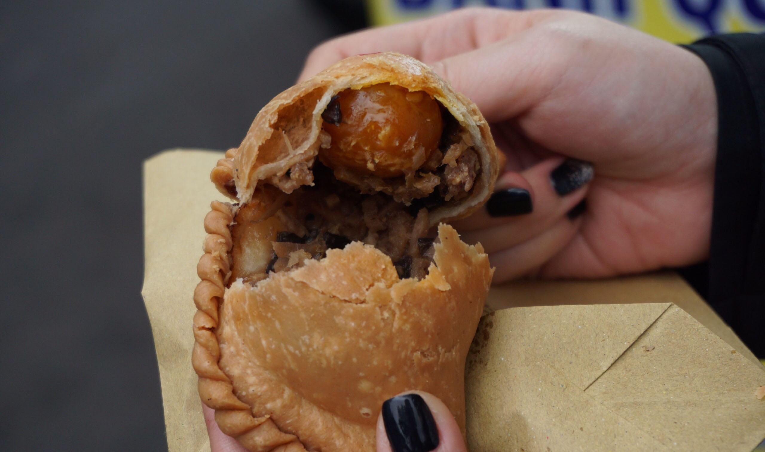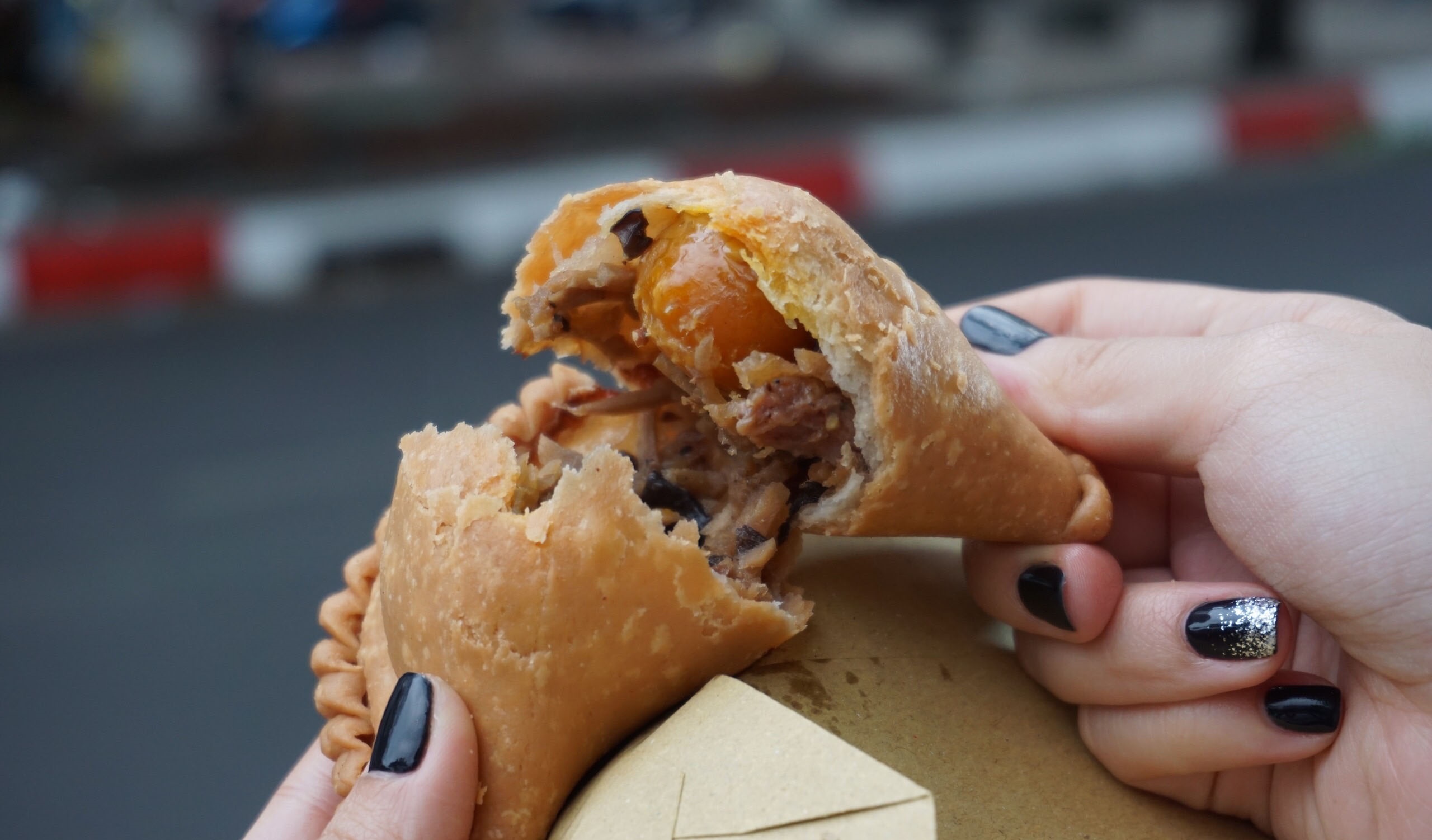 Tương tự như bánh gối miền Bắc, bánh quai vạc sở hữu lớp vỏ bột bao bọc phần nhân đầy đặn. Tuy nhiên, hương vị lại khác biệt vô cùng. Phần bột giòn rụm, mỏng vừa và ráo dầu. Người bán sẽ thêm chút gia vị để tạo độ mặn ngọt hài hòa đẩy đưa trong miệng. Đưa chiếc bánh lên miệng và cắn thử nhân bên trong thì ai cũng bất ngờ với lượng thịt, nấm ngập khắp khoang miệng.