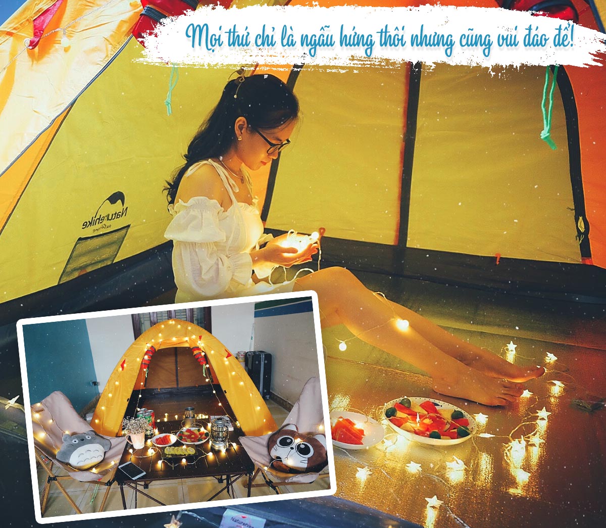 Nếu như trước kia bạn thường xuyên tìm đến những địa điểm rộng lớn như gần biển, hồ, rừng hay chân cầu để cắm trại, hít hà bầu không khí trong lành, thả mình nghe tiếng chim hót, tiếng suối chảy, sóng biển rì rào mới tuyệt làm sao, thì nay Camping ở nhà có đầy đủ tiện nghi đến vậy, không phải tiếp xúc với quá nhiều người, một góc nhà bình thường nay trở thành một nơi "chill chill" thú vị, thỏa sức sáng tạo.