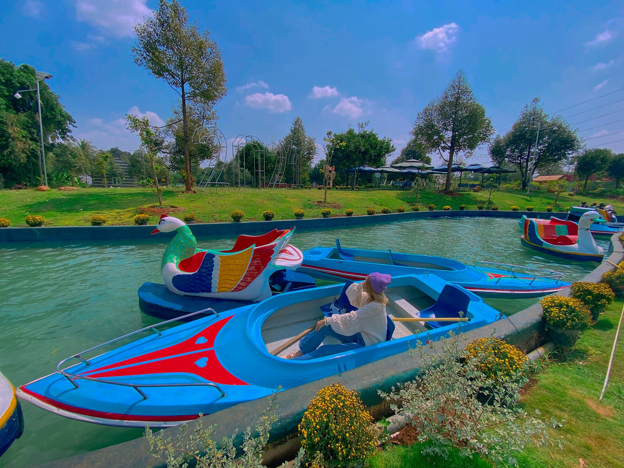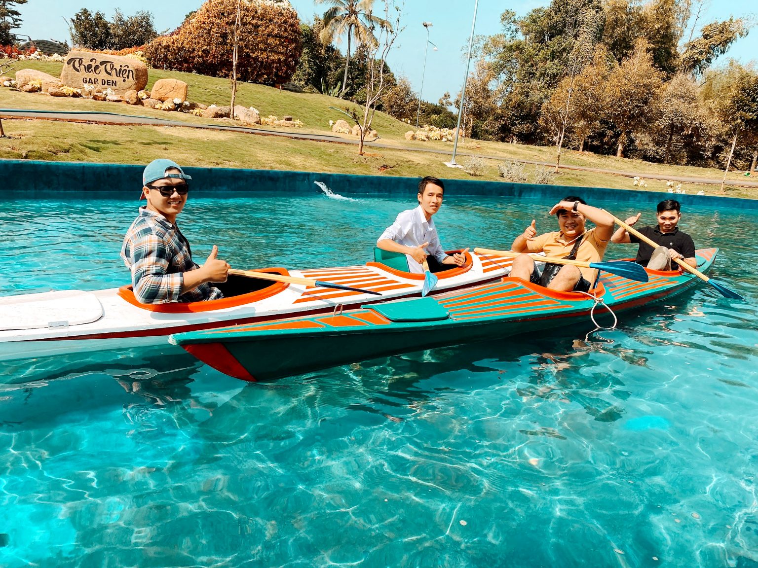 Tới đây, bạn sẽ có rất nhiều trải nghiệm thú vị cùng các hoạt động như bơi lội, chèo thuyền, đạp vịt... Trải nghiệm đặc biệt nhất được nhiều du khách ưa thích là đi thuyền và nằm thư giãn trên “dòng sông lười”, đắm mình dưới ánh dương rạng ngời, chảy bao quanh khu nghỉ dưỡng. Dòng sông độc đáo này sẽ giúp bạn có khoảng thời gian thư giãn tuyệt vời cùng bạn bè, trong khi vẫn tận hưởng được làn gió mùa hè bên dòng nước mát lạnh.