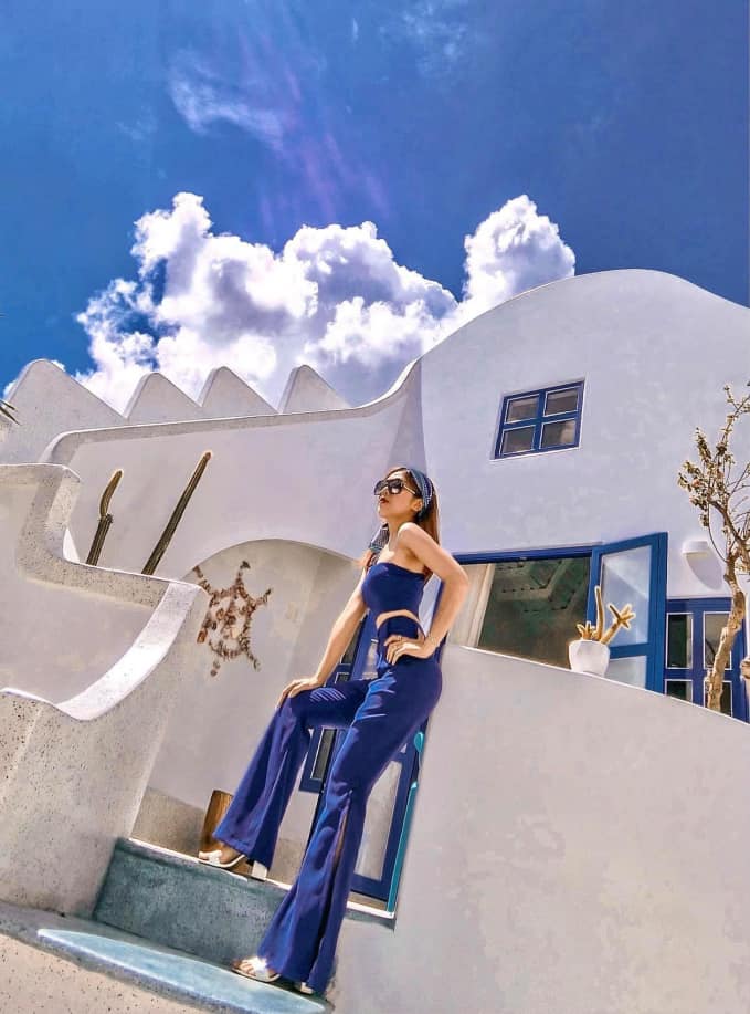 Không chỉ vậy, Santorini Villa Studio & Cafe còn có cả những giàn hoa giấy rực rỡ, những chậu xương rồng siêu to khổng lồ, hồ bơi sang chảnh và những bãi đá gồ ghề cùng tầm nhìn hướng ra bãi Dài xinh đẹp. Đảm bảo đến đây, bạn sẽ tha hồ check-in quên lối về.