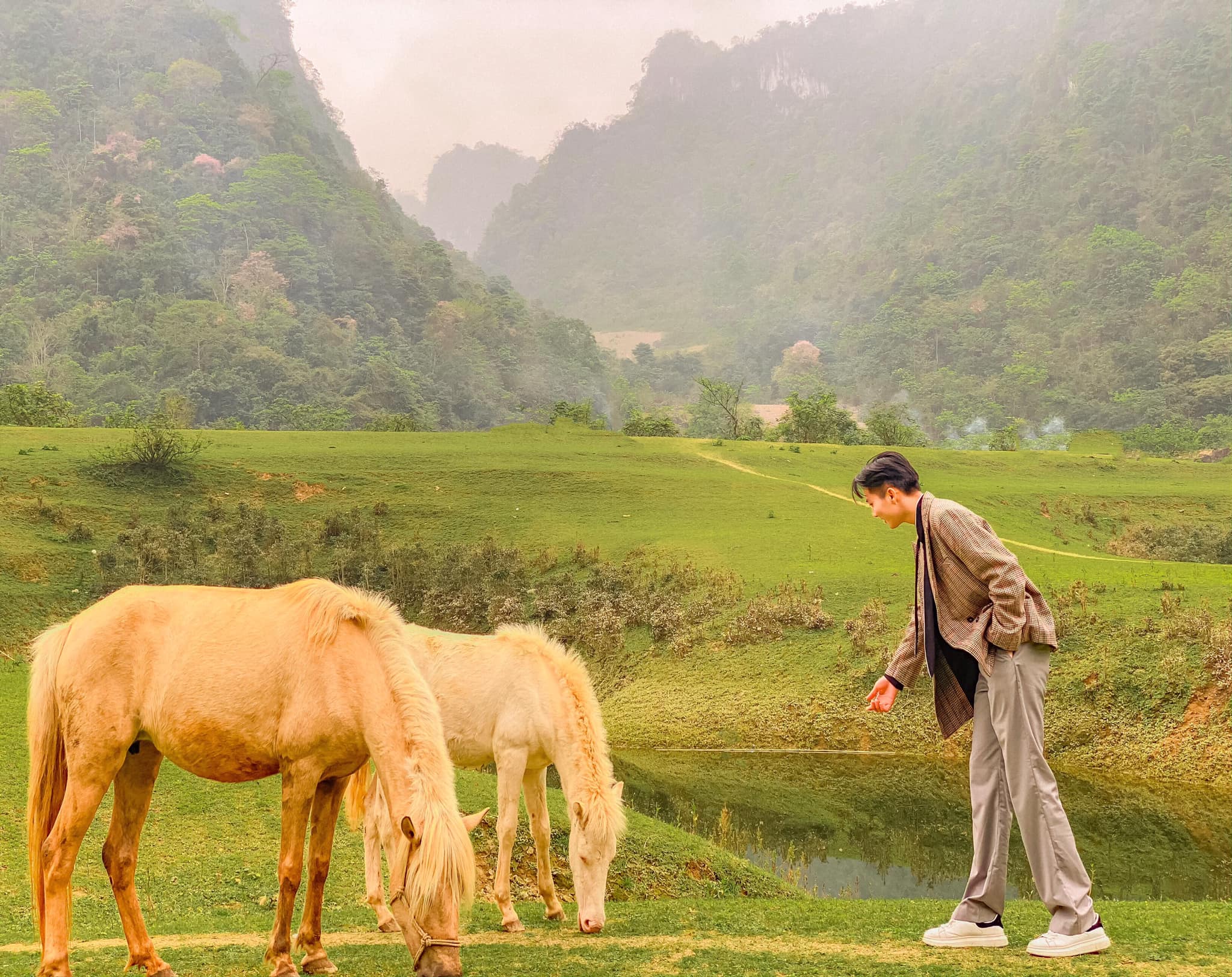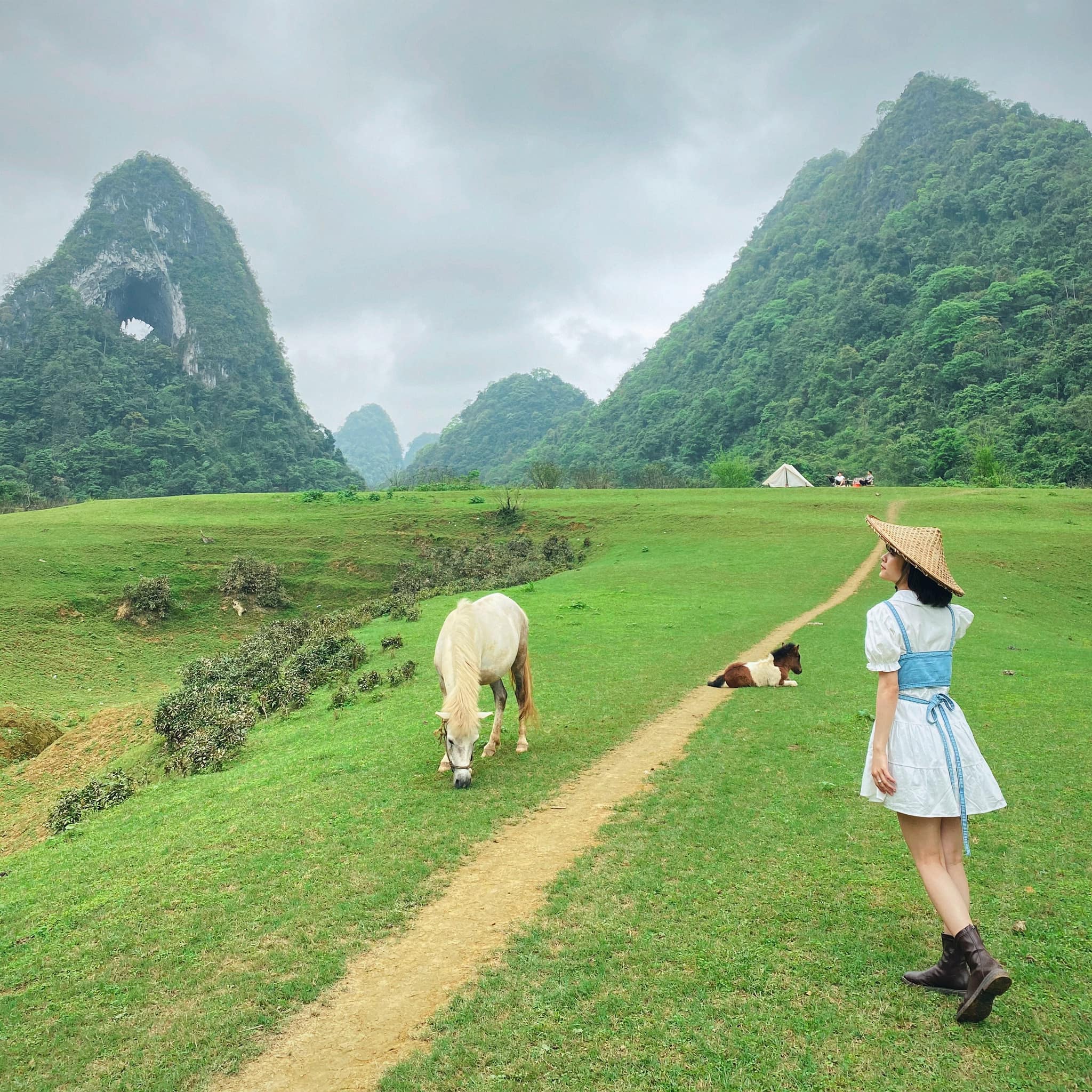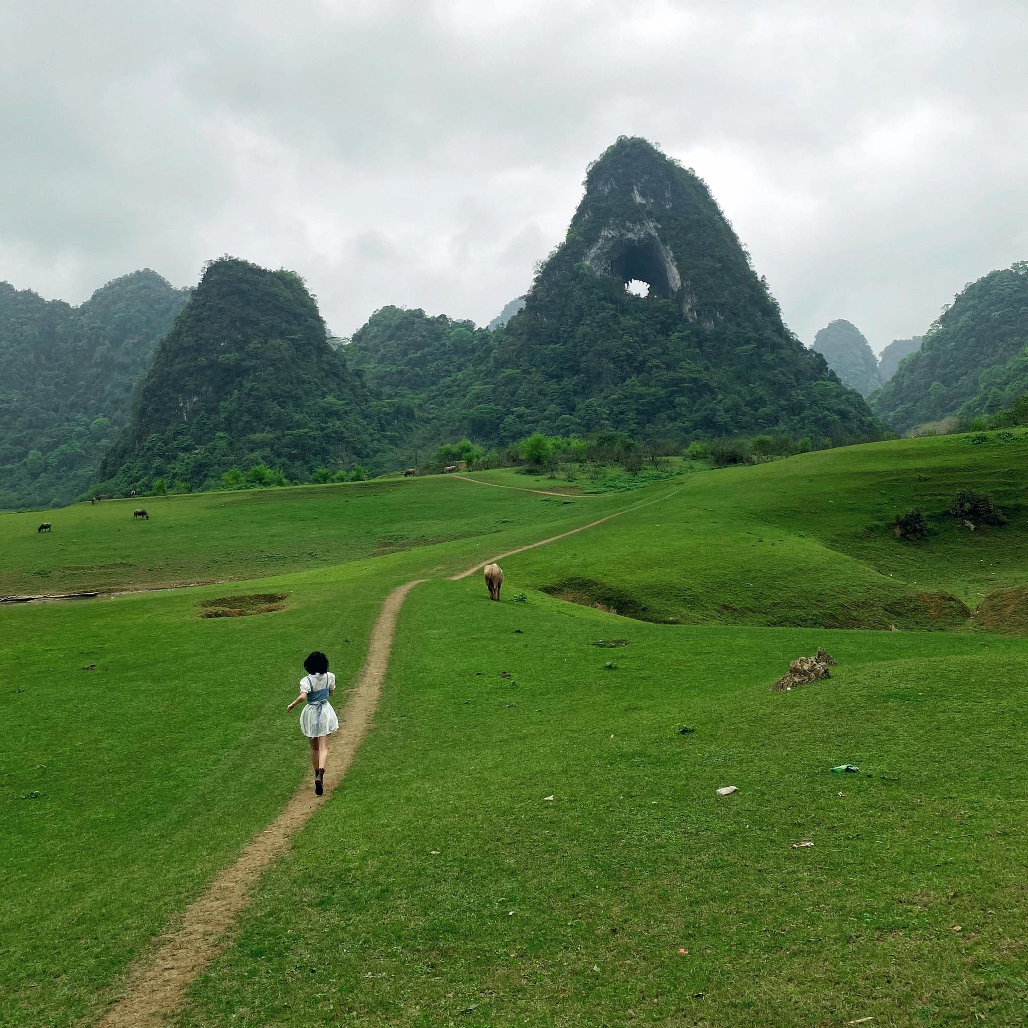 Quanh ngọn núi là những chú ngựa hay đàn trâu bò thẩn thơ thong dong gặm cỏ. Nằm xen kẽ với những ngọn núi đá trập trùng, hòa mình vào làn sương trắng lấp lánh nắng vàng, ngọn Mắt Thần nổi bật giữa khung cảnh nên thơ, bình yên như một thảo nguyên du mục, khiến ai đến đây cũng phải nao lòng.