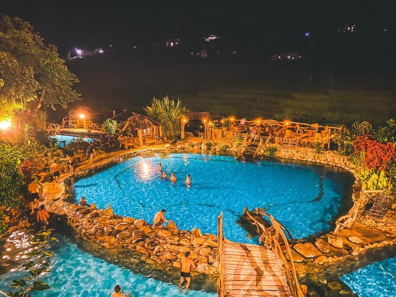 Khu sinh thái suối khoáng nóng là một trong những địa điểm sống ảo đẹp mê mẩn ở Trạm Tấu và mang đến nhiều hoạt động thú vị cho bạn. Tọa độ nghỉ dưỡng này sở hữu bức tranh đồng quê yên bình và được thiết kế với nhiều hạng mục đẹp mắt như: Khu phòng nghỉ dạng bungalow, nhà hàng ẩm thực Tây Bắc, khu hồ khoáng nóng trong xanh. Những ngày cuối tuần nghỉ ngơi tại đây bạn sẽ dễ dàng tìm cho mình sự an nhiên và sạc đầy năng lượng cho tâm hồn.
