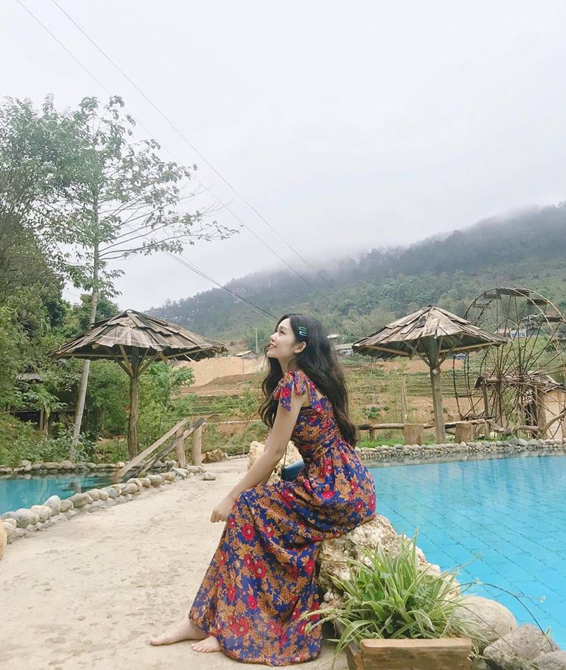 Khu vực hồ bơi được trang trí bằng nhiều viên đá lớn nhỏ xếp đan xen nhau. Giữa các hồ được bắc thêm cây cầu nhỏ bằng gỗ rất tiện cho việc di chuyển và là background đỉnh cao để bạn tha hồ thả dáng.