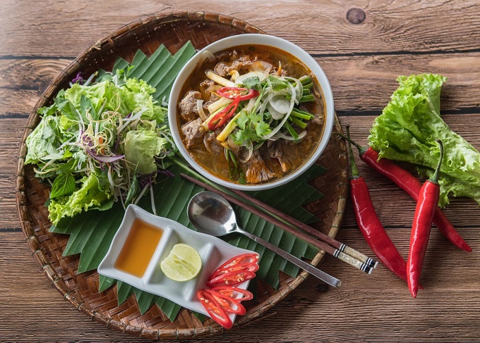 Cứ nghĩ trời đông buốt lạnh, mà thưởng thức tô bún bò chuẩn vị đỏ rực màu ớt, cay xè lưỡi nhưng ai cũng phải gật gù xuýt xoa đã thấy thích thú làm sao. Bạn nhớ ăn cùng rau sống và hoa chuối thái nhỏ để cảm nhận hương vị tuyệt vời của món ngon này nhé.