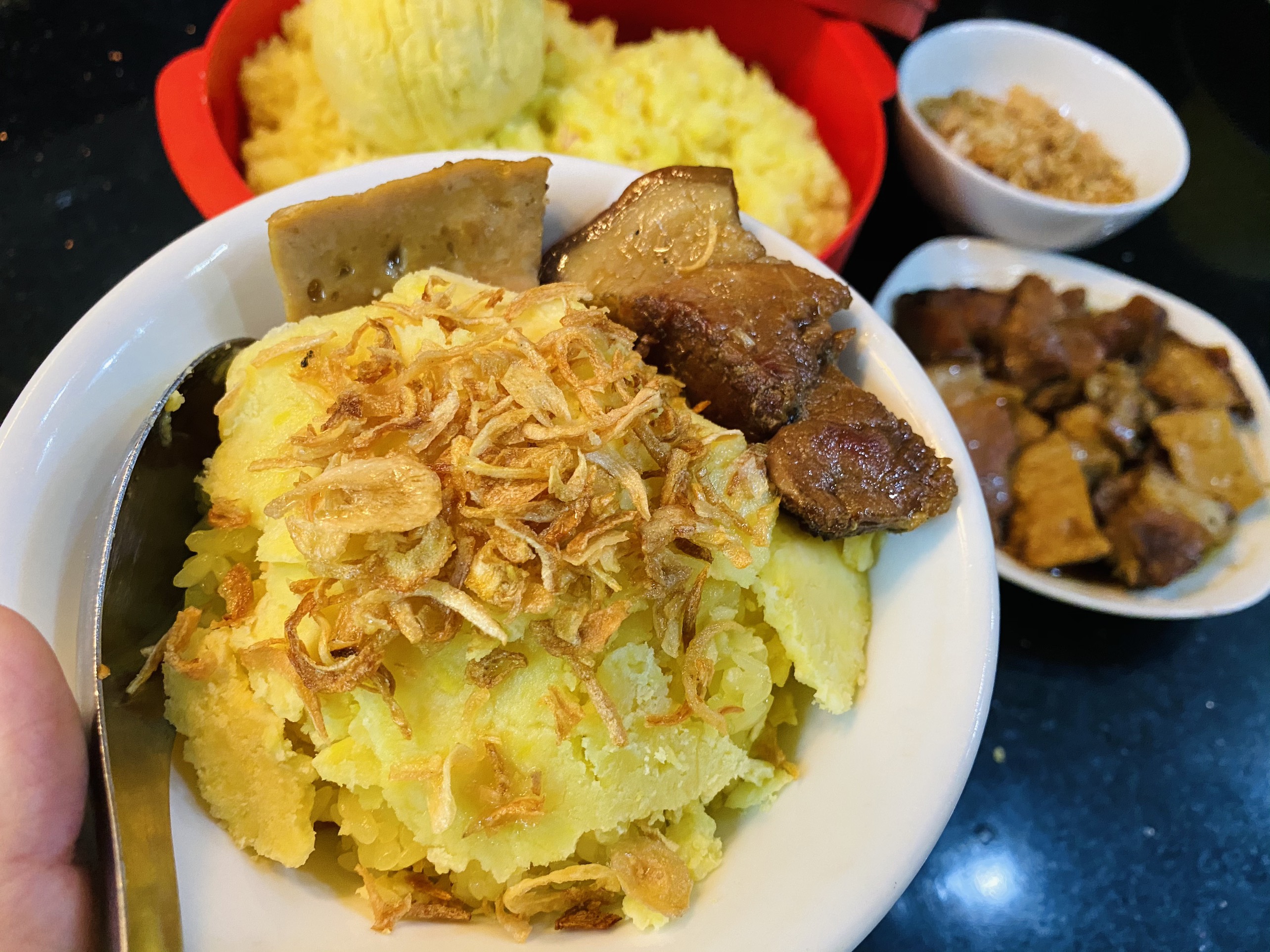 Đến đây bạn có thể gọi xôi trắng, xôi xéo hoặc xôi gấc kèm với nhân mặn như trứng, thịt kho, ruốc, chả… tùy theo nhu cầu. Và đừng quên nhắc cô Sen rưới đẫm loại nước sốt độc đáo chỉ có ở nơi đây nhé. Vị ngọt mặn trung hòa của nước sốt cùng phần xôi chất lượng càng khiến món ngon này đưa đẩy lôi cuốn đến bất ngờ.