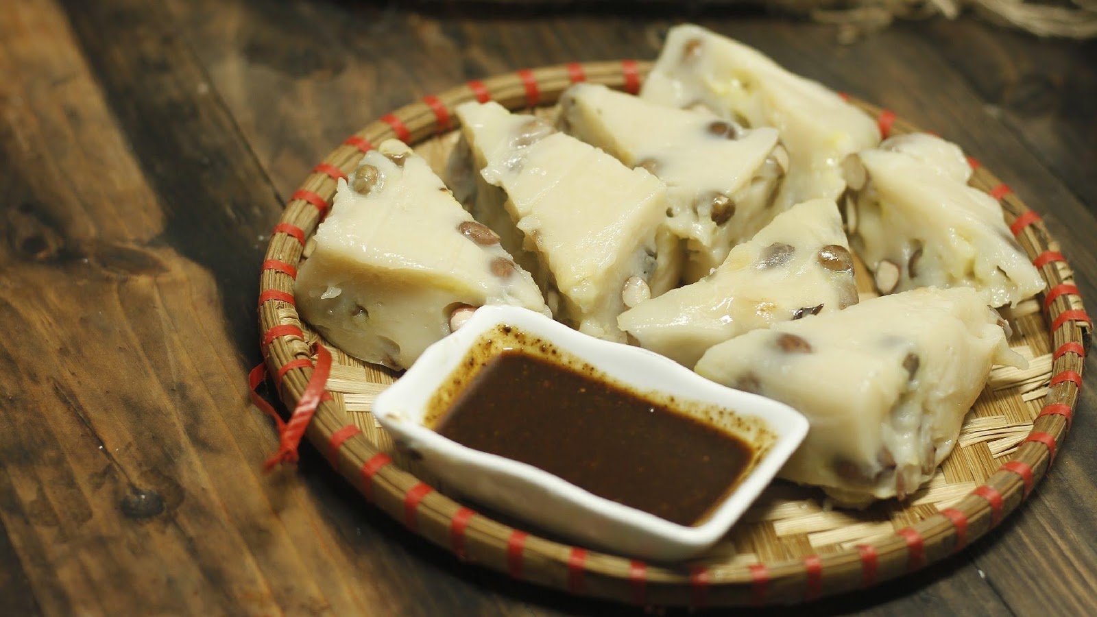 Từng miếng bánh đúc bóng mịn, lấm tấm mấy hạt lạc sần sật, mới nhìn qua đã thấy hấp dẫn. Chấm miếng bánh đúc ngọt béo trong lớp tương bần mằn mặn pha chút ngọt ngọt, hương vị xưa cũ dường như chưa bao giờ phai bớt trong tiềm thức.